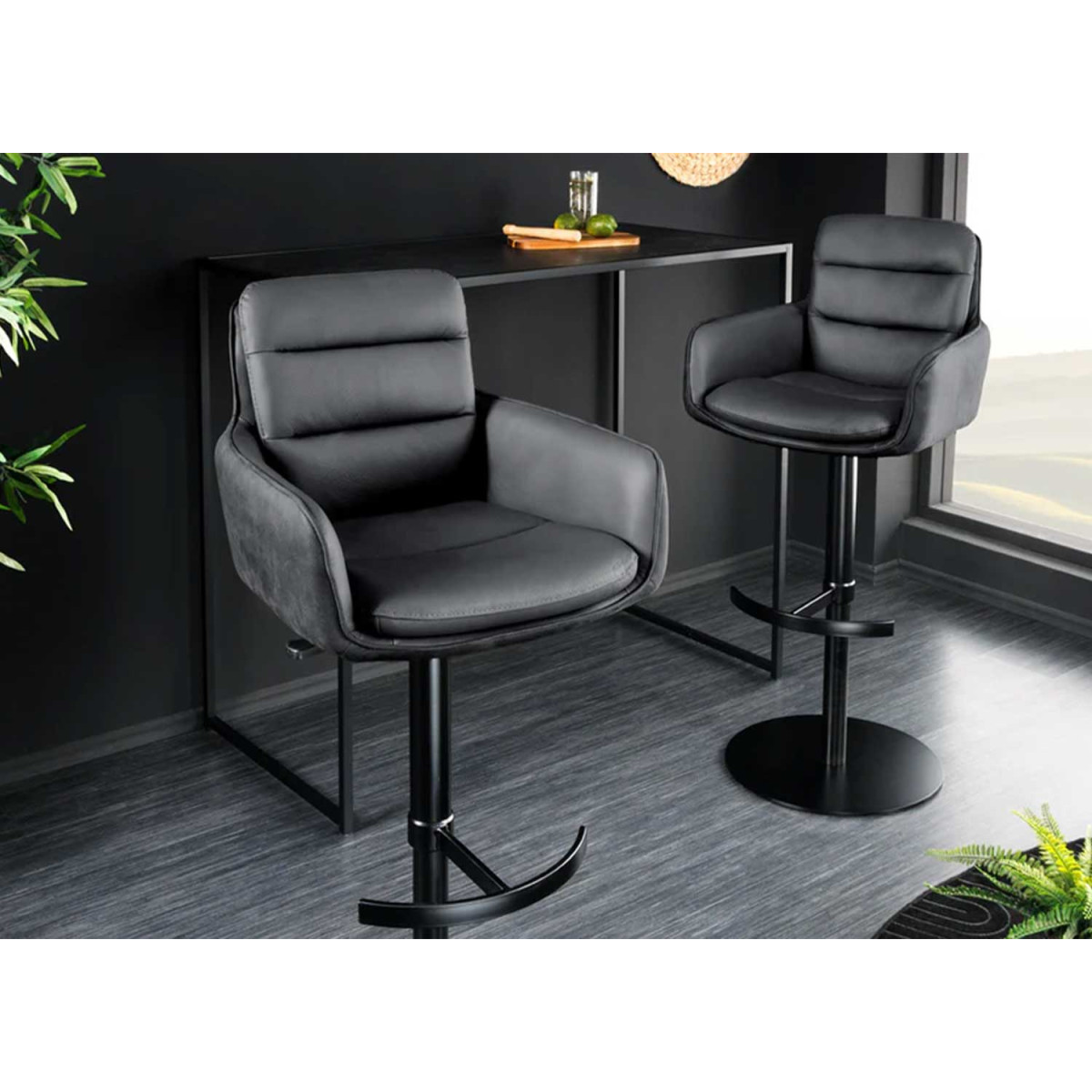 Le tabouret de bar pivotant Abby est revêtu de microfibre et de cuir anthracite. Ce tabouret de bar est confortable grâce à ses accoudoirs et est réglable en hauteur. Il dispose d'un piétement avec