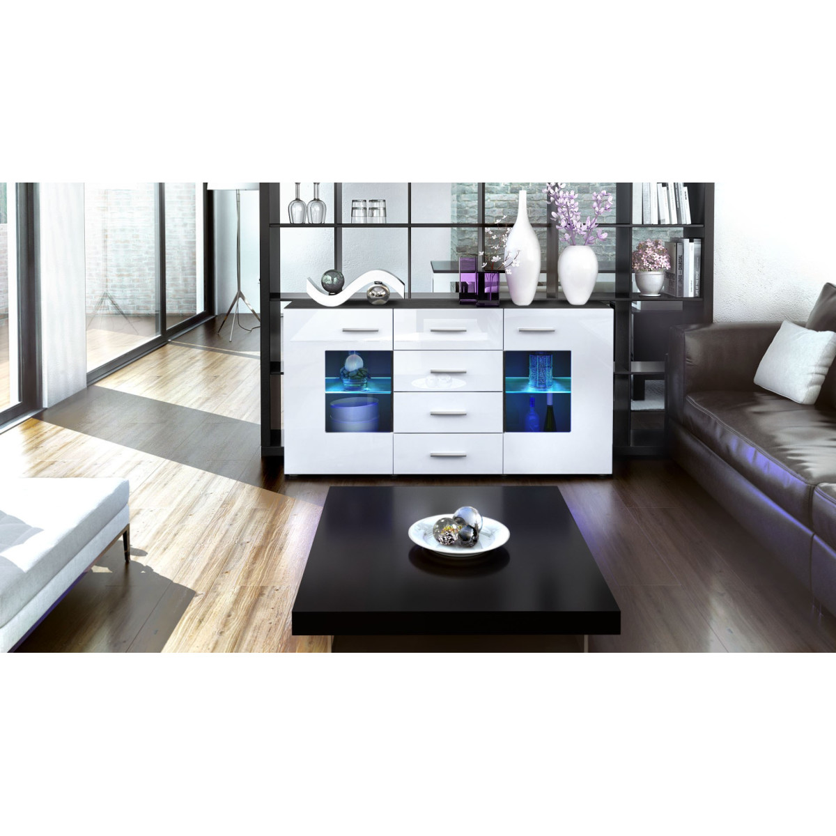 Pour apporter du peps dans votre salon design, vous préférerez un bahut aux façades colorées sans poignées : rouge laqué, blanc et gris laqué, noir laqué, violet, vert ou bleu pétrole. Les façades des portes créent parfois un effet géométrique selon leur placement pour apporter un esprit design.