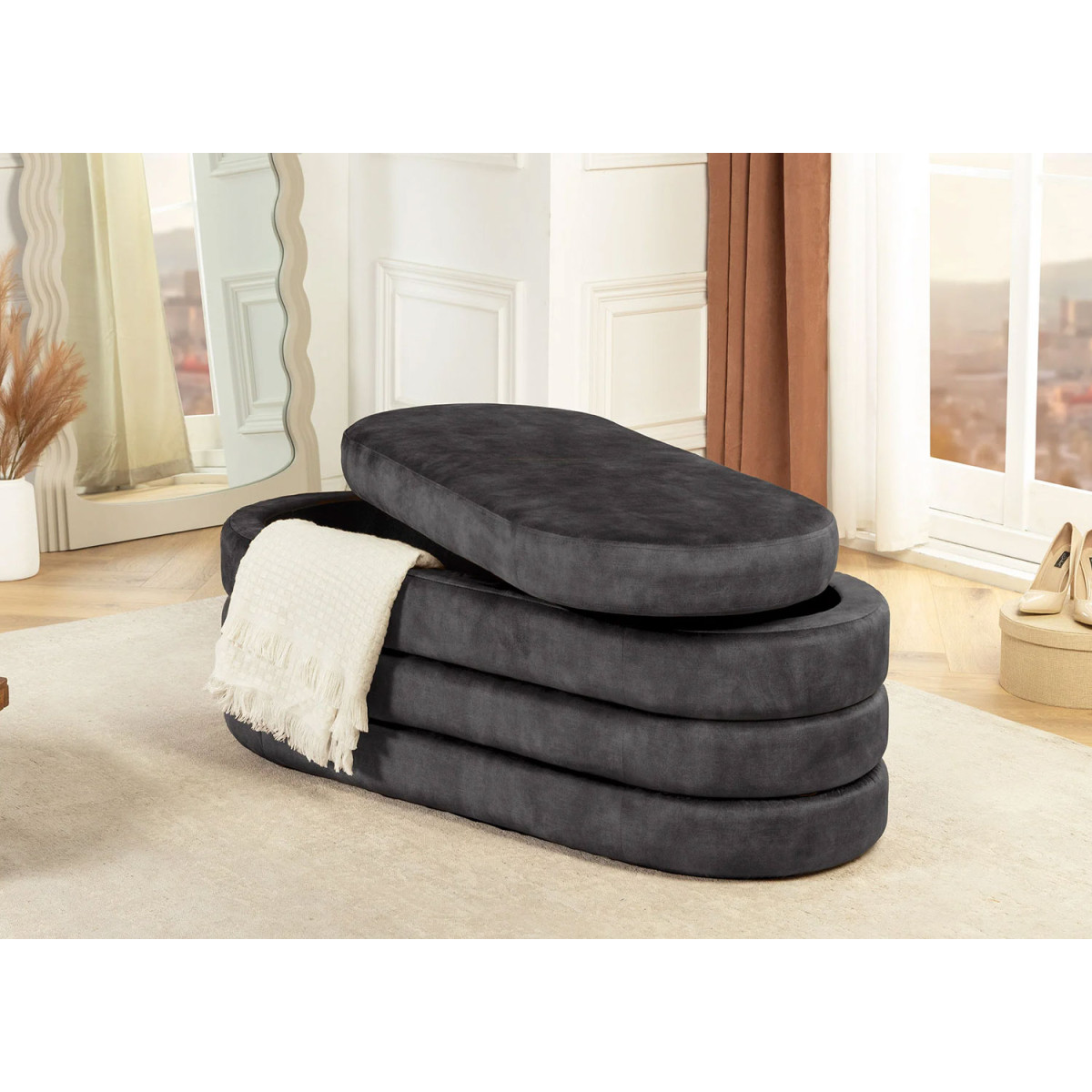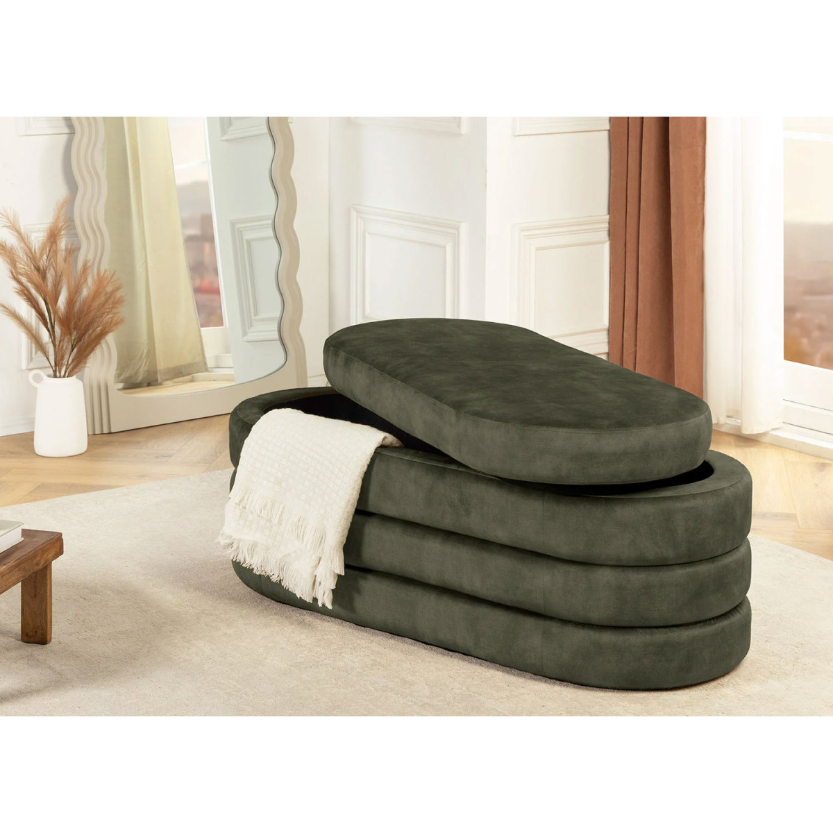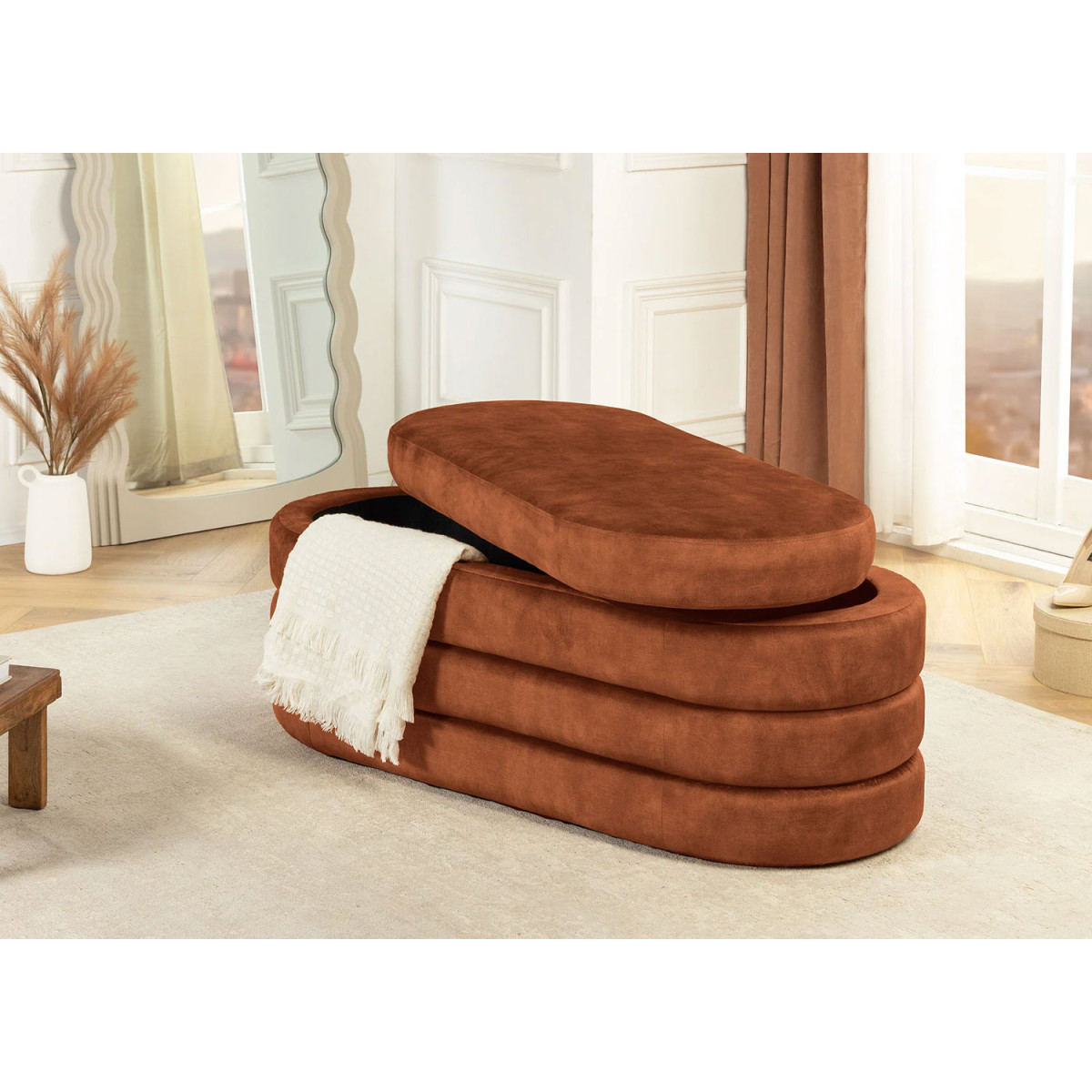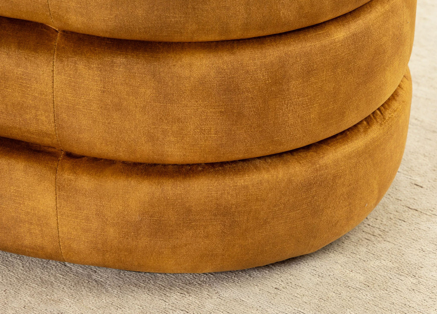 ✓ Élégance et rangement discret pour le banc coffre Hope en tissu velours jaune moutarde idéal dans une entrée, un salon ou même dans une chambre en tant que pied de lit.