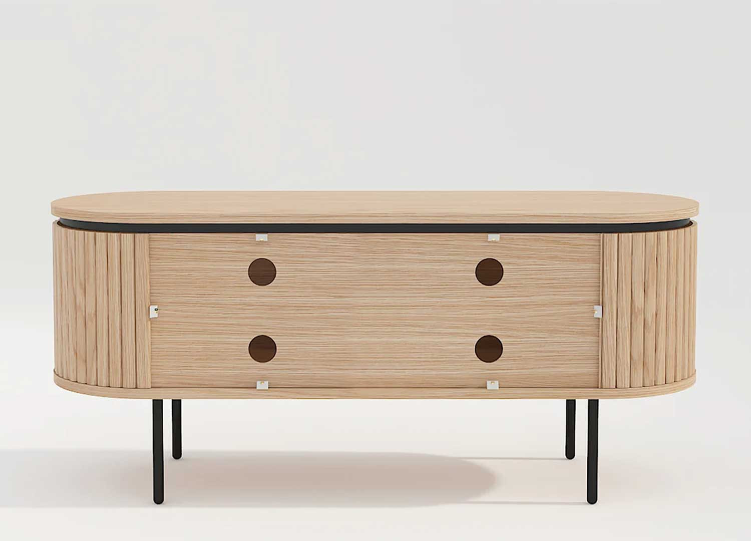 ✓ Dans votre salon, le meuble TV Lili ne se contente pas d’accueillir votre écran : il signe une ambiance. L’alliance du chêne naturel et du métal noir apporte une touche contemporaine qui fait de ce meuble un véritable atout déco.
