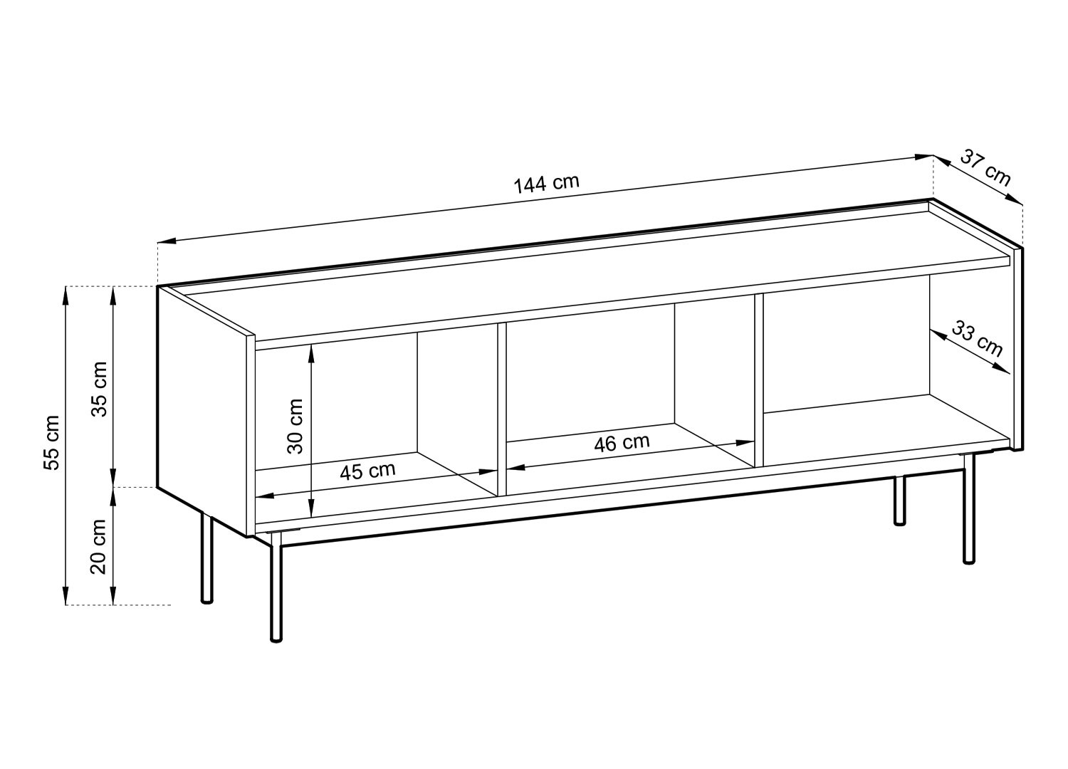 Dimensions meuble tv | L 144 x H 55 x P 37 cm |