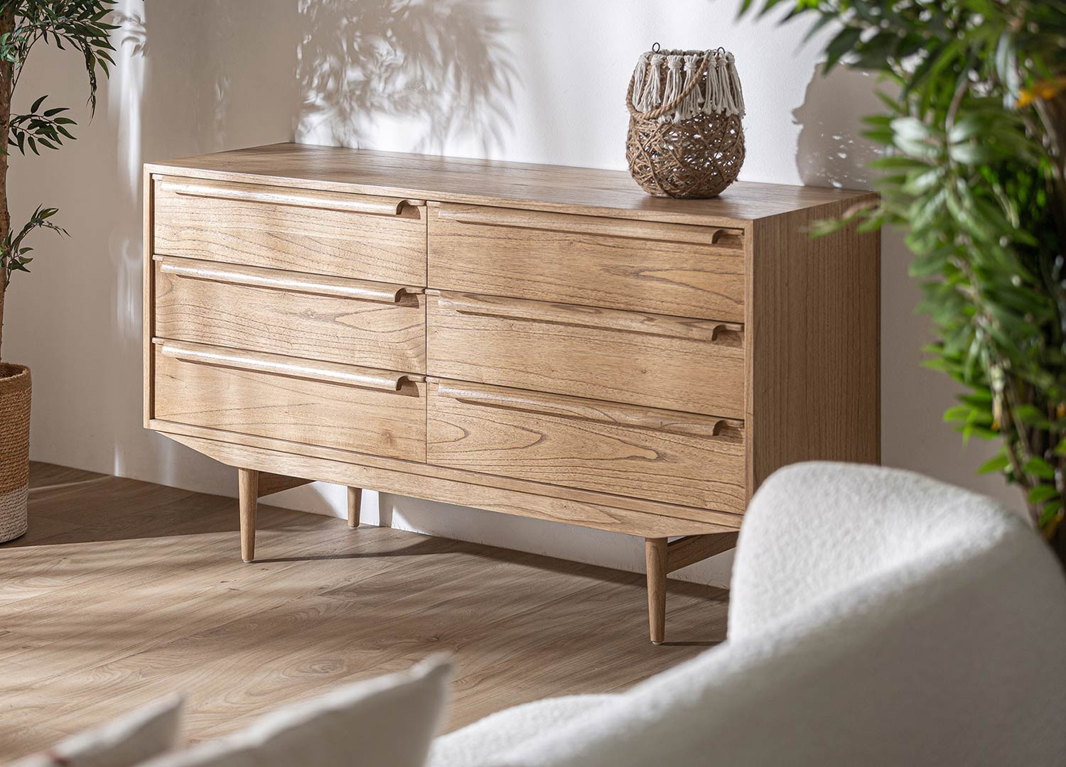 Giulia est un buffet au style scandinave qui peut s'intégrer dans toute pièce de votre intérieur. Ce meuble buffet de 150 cm dispose de six grands tiroirs avec poignées à débords et est fabriqué en bois de mindi. Un meuble indémodable que l'on adore.