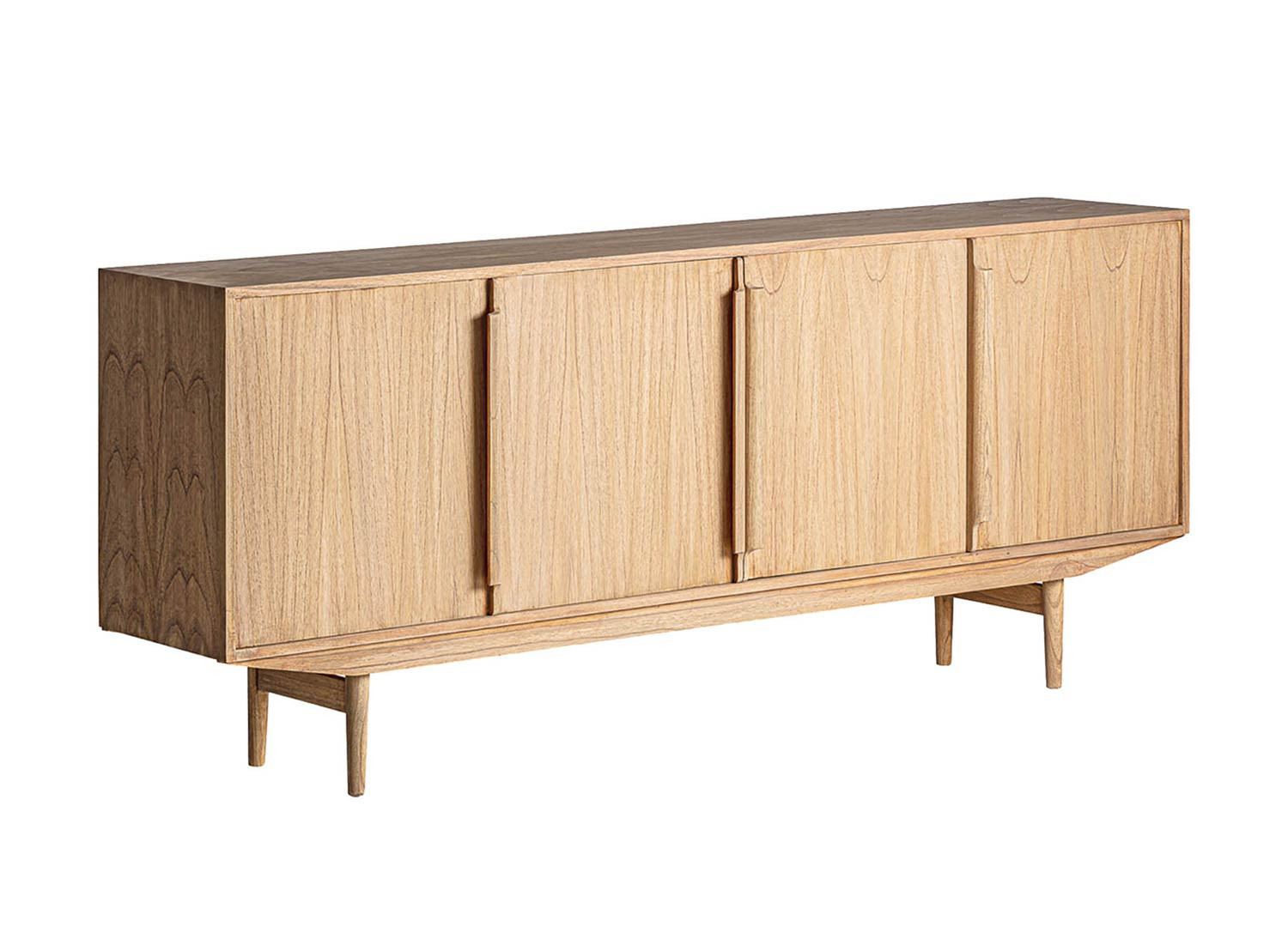 Avec ses pieds élancés et sa finition naturelle, le buffet de la collection Giulia séduit. Ce buffet moderne dispose de 4 portes avec étagères de rangement. Les portes sont munies de poignées en débords élégantes. Fabriqué en bois de mindi, ce buffet de 200 cm ajoutera un esprit minimaliste dans votre intérieur.