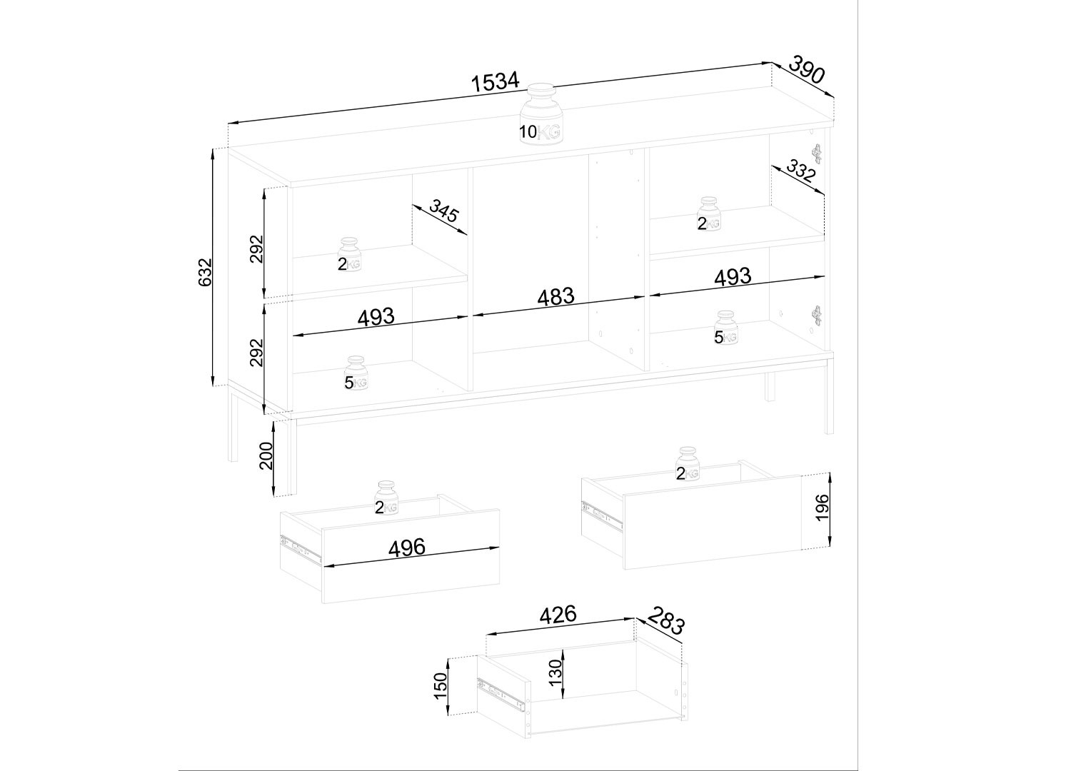 Dimensions buffet | L 153,4 x H 83 x P 39 cm |