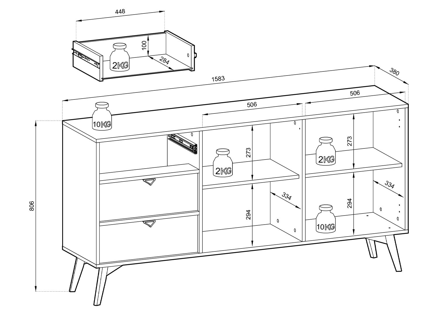 | Dimensions buffet | L 158,3 x H 80,6 x P 38 cm |