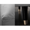 Le canapé d'angle Anatole en velours gris vous assure confort grâce à son rembourrage à ressorts ensachés. Son matelassage rappelle le style Chesterfield et ses pieds sont en bois massif noir et doré d'une hauteur de 16 cm. Le pouf est modulable et peut être positionné des deux côtés.