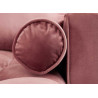 Détail du canapé d'angle rose - tissu velours rose - montage gauche ou droite - rembourrage à ressorts ensachés - pieds noir et doré d'une hauteur de 16 cm - 2 coussins ronds décoratifs inclus Autres informations - profondeur d'assise : 68 cm (avec coussin 54 cm) - hauteur du dossier 39 cm - coussin rond L 51 x H 16 cm (x2) - coussin de dossier L 80 x H 39 cm (x3) |