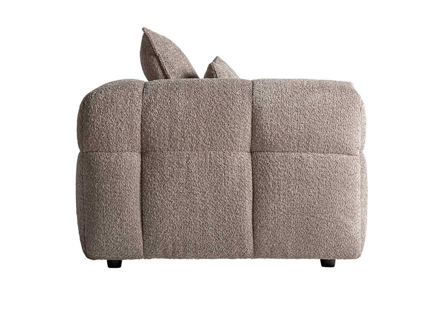 Ce canapé spacieux de 284 cm au design contemporain dispose d'un capitonnage géométrique. Le revêtement est en tissu bouclé marron et les coussins décoratifs sont garnis de plume d'oie. Ses lignes épurées et ses pieds discrets en font un meuble idéal pour les grands espaces, parfait pour recevoir et se détendre.