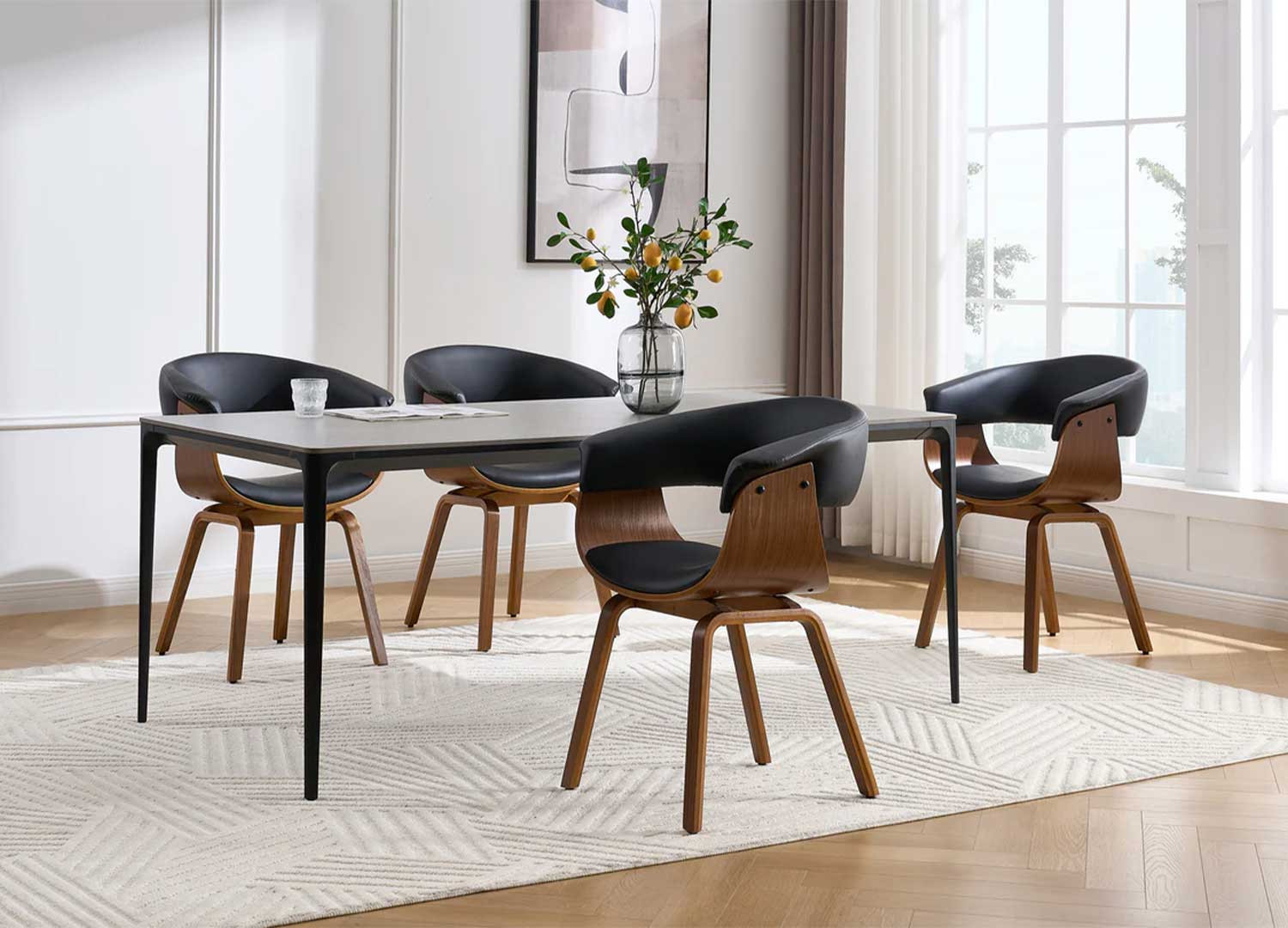 ✓ Apportez un esprit mid-century à votre table à manger avec cette chaise élégante noyer et simili cuir noir.
