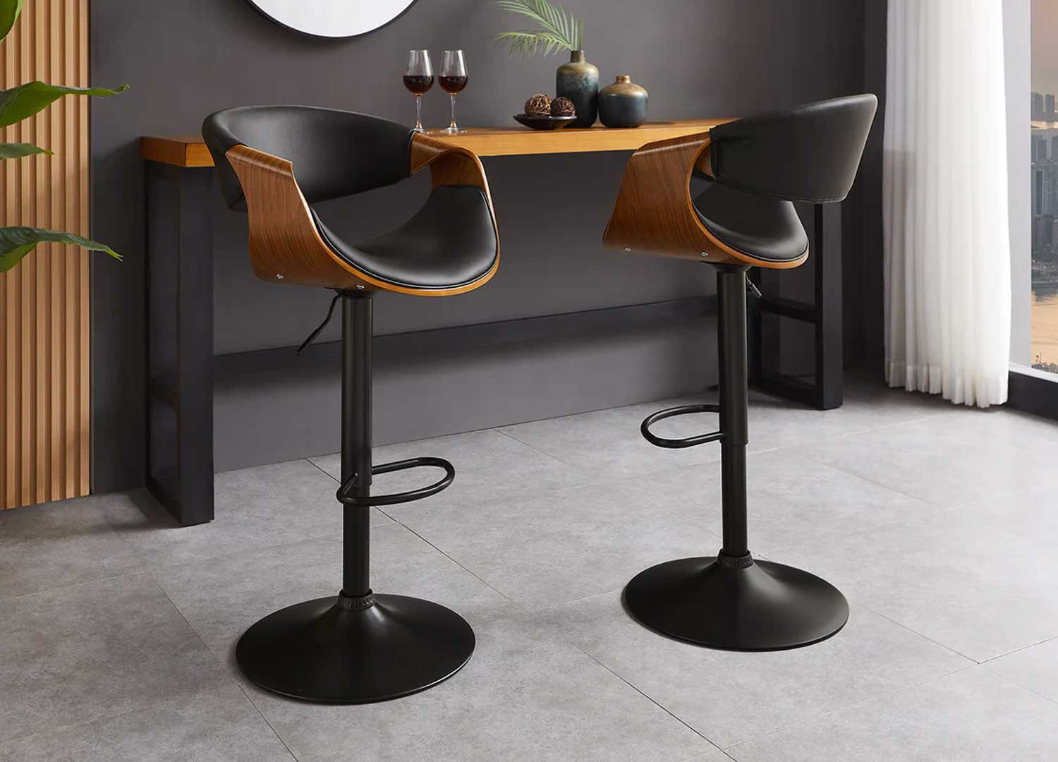 ✓ Apportez un esprit mid-century à votre table de bar avec ce tabouret élégant noyer et simili cuir noir.