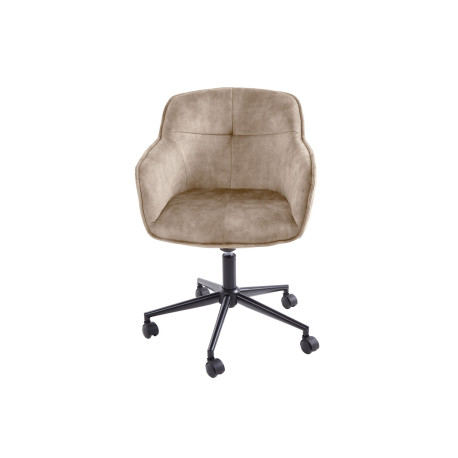 Cette chaise de bureau est parfaite pour le travail à domicile. Elle dispose d'un revêtement en velours champagne grège avec surpiqûres décoratives et d'un cadre en métal noir monté sur cinq roulettes. L'assise est réglable en hauteur afin de s'adapter à chacun.