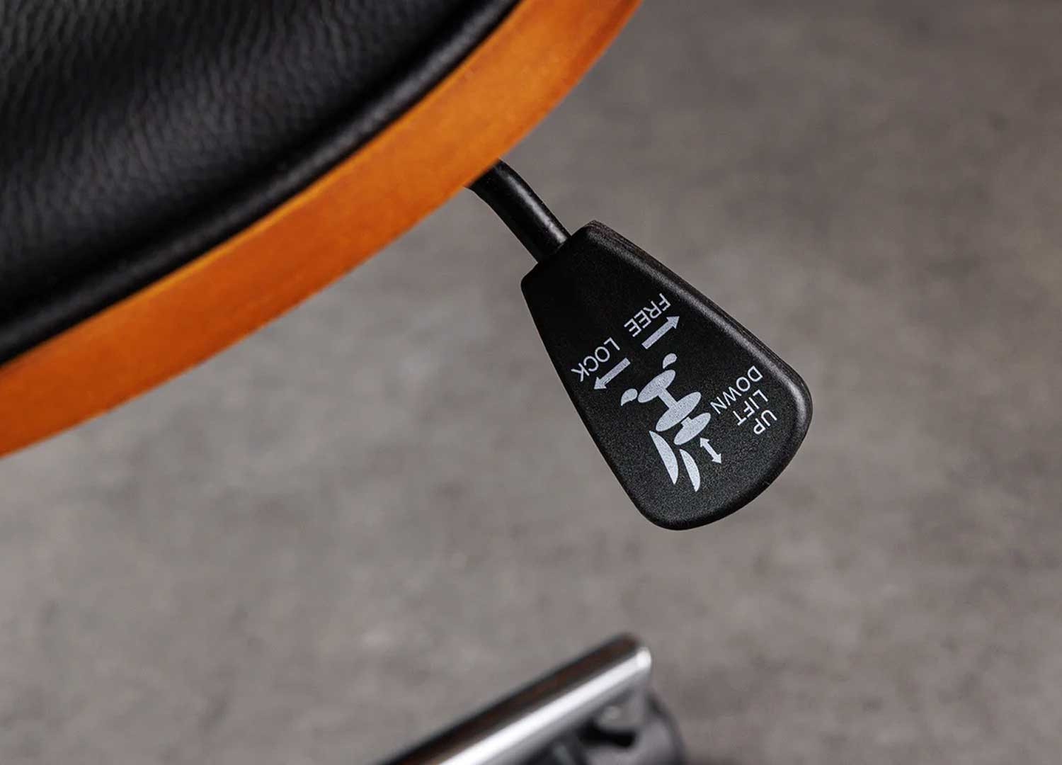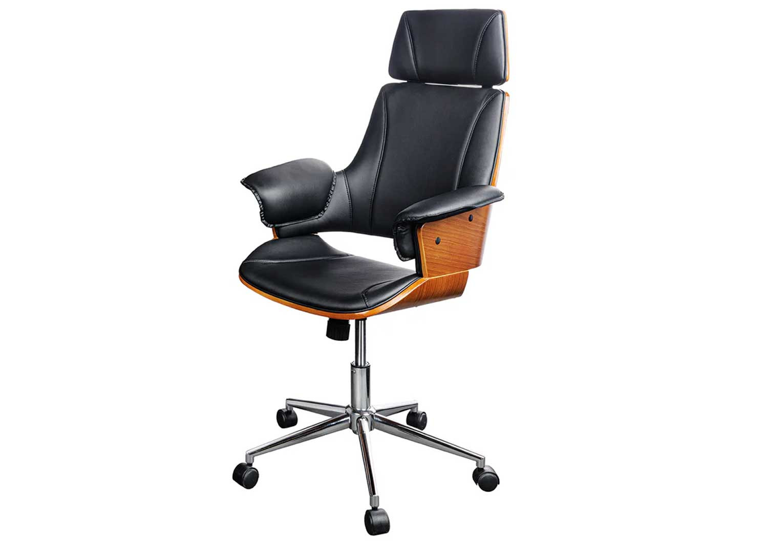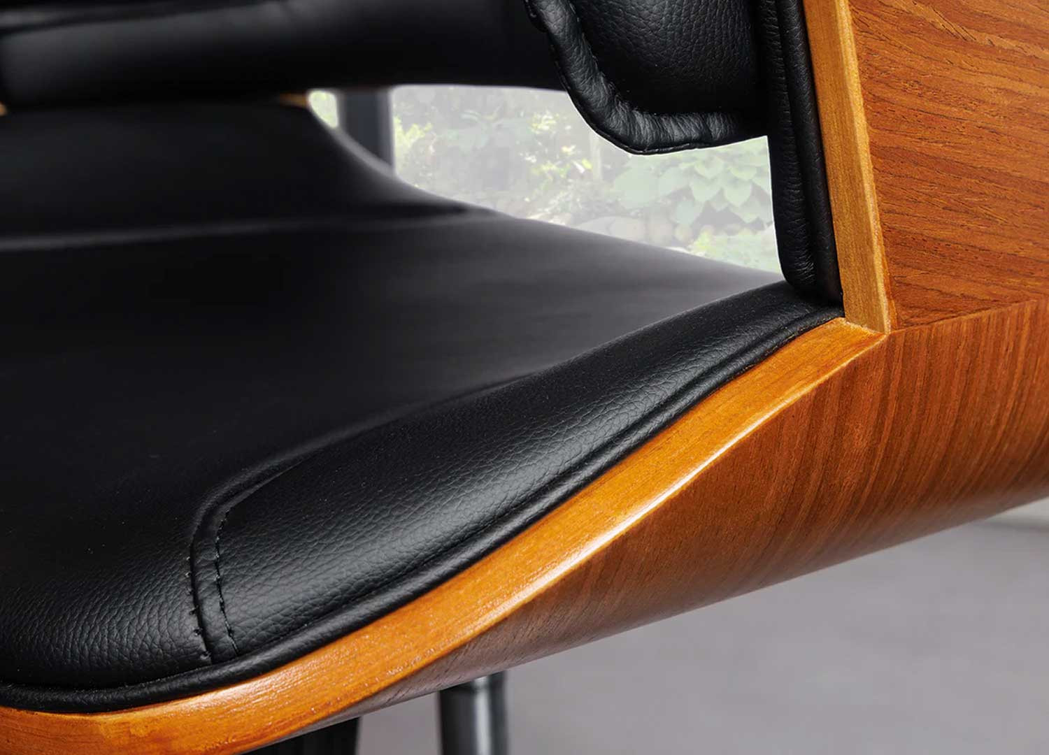 Le fauteuil de bureau Oliver vous offrira confort grâce à son assise en simili-cuir noir et son placage noyer. Inspirée du style mid century, ce fauteuil de bureau est doté d’une assise réglable en hauteur (44-54 cm), d’une rotation à 360° et de roulettes fluides. Sa structure métallique robuste lui permet de supporter jusqu’à 130 kg.