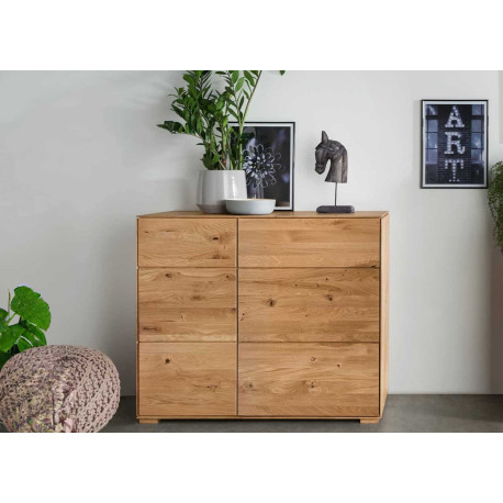 Meuble commode bois massifCette élégante commode en bois de chêne sauvage massif est à la fois fonctionnelle et esthétique. Avec ses deux portes coulissantes, elle offre un espace de rangement pratique et bien organisé. Derrière ces portes se cache une étagère, parfaite pour ranger divers objets. Ce qui distingue cette commode, c'est sa polyvalence. Vous avez la possibilité de l'accrocher au mur pour économiser de l'espace et créer une atmosphère aérienne, ou de la poser au sol pour un aspect plus traditionnel. Sa fabrication en bois de chêne sauvage massif assure non seulement sa durabilité, mais ajoute également une touche naturelle et chaleureuse à votre intérieur. Que ce soit dans une chambre à coucher, un salon ou même une entrée, cette commode allie beauté et utilité, offrant un espace de rangement pratique tout en étant un élément attrayant de votre décoration intérieure. Pour compléter votre intérieur avec élégance, découvrez les autres meubles de la collection Eva. | ||