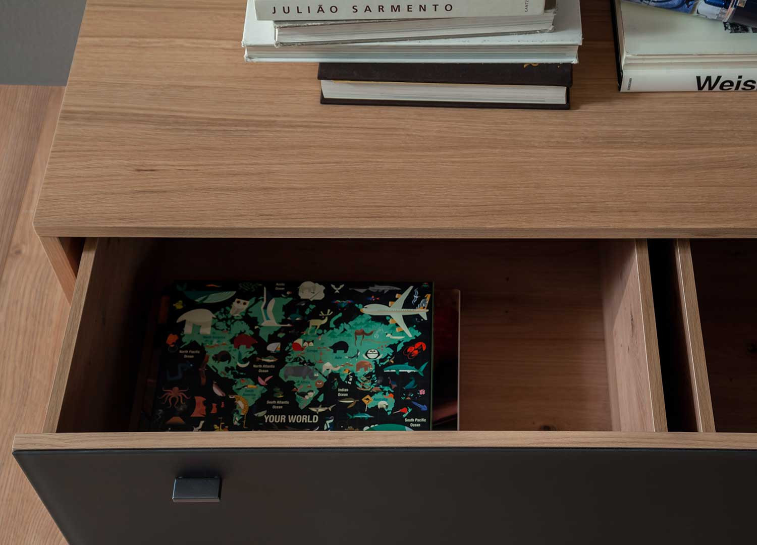 - tiroir : 2x L 54,5 x H 12,5 x P 38 cm + 2x L 54,5 x H 22,5 x P 38 cm