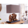 Cette lampe de table unique associe une base en bois flotté à un abat-jour rectangulaire marron, reposant sur un socle noir. Son design évoque la nature tout en offrant une élégance simple et contemporaine à votre intérieur.