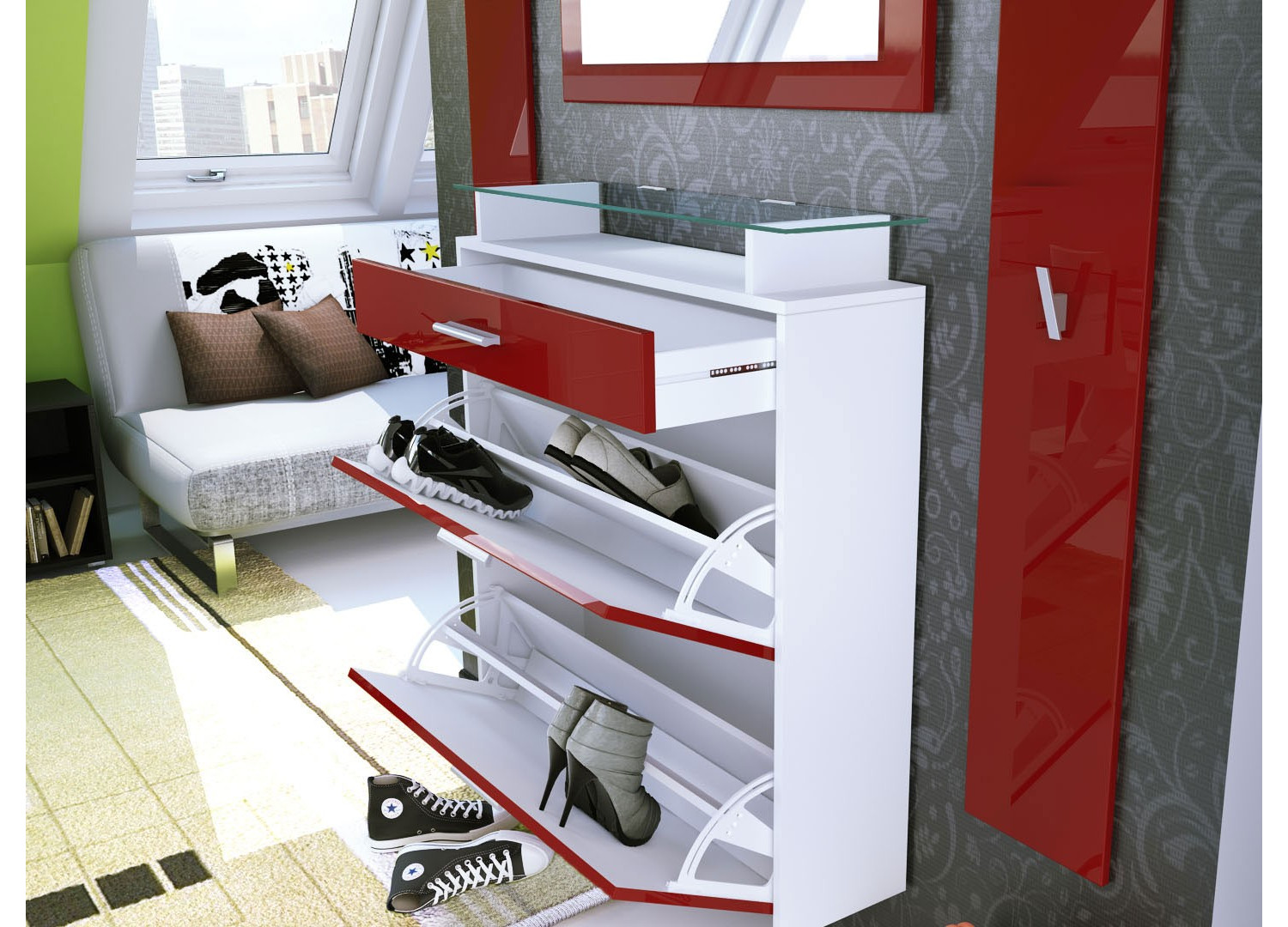 Plusieurs raisons de choisir ce meuble à chaussures mural. Premièrement pour le rangement des chaussures bien sûr, deuxièmement pour le design et les possibilités de couleurs proposées, troisièmement pour le nettoyage et quatrièmement son prix !