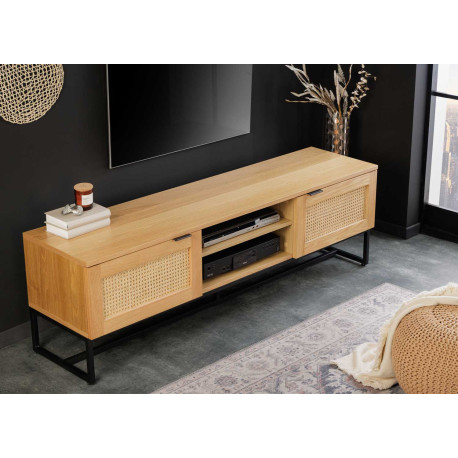 Avec ce meuble tv de 2m, vous apporterez un esprit authentique dans votre salon. Ultra fonctionnel, ce meuble tv en bois et métal dispose de un tiroir pour les télécommandes et accessoires hifis, une niche pour vos appareils multimédias et deux portes pour tous autres objets utiles pour votre salon. Offrez-vous ce meuble tv unique et original au design industriel ultra tendance avec ses montures en métal croisé.