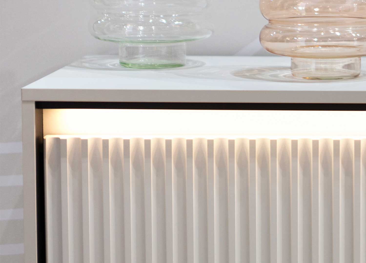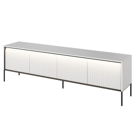 Ce meuble TV n'est pas seulement un meuble de salon pour ranger les appareils hifis, il est aussi un élément design qui soulignera le style de votre pièce. Ce meuble TV blanc de 193 cm dispose de 4 portes et de pieds fins élancés. Les façades rainurées sont soulignées par un éclairage LED subtil, qui créera une atmosphère romantique le soir.