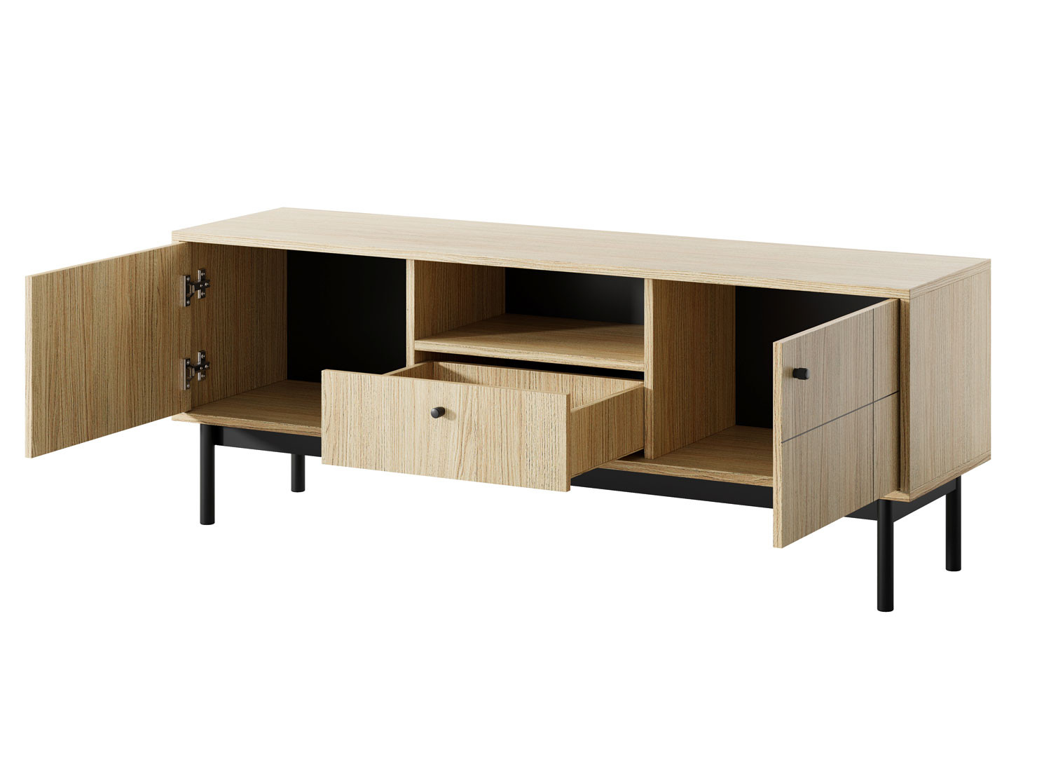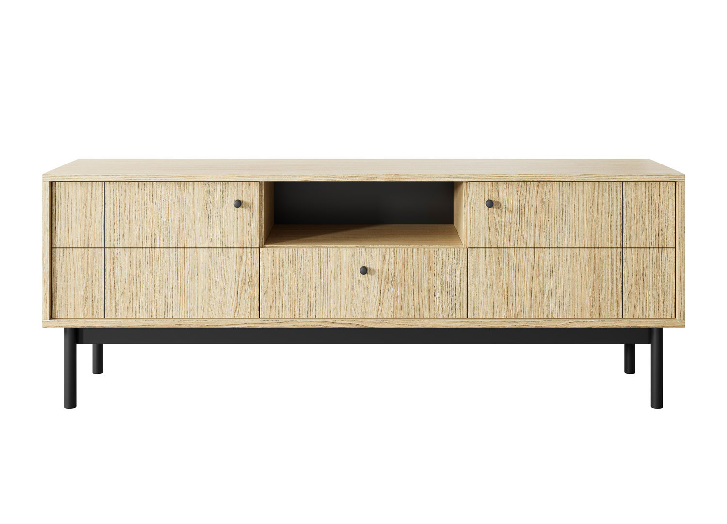 Le meuble TV Japandi de couleur chêne de 153 cm est un meuble qui décline avec élégance le style nordique dans une version pensée pour le salon. Ce meuble TV est composé de deux portes en extrémité, d’un tiroir central coulissant et d'une niche ouverte.