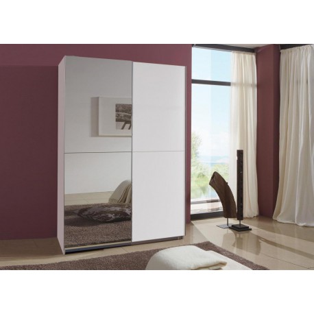 Une armoire blanche de deux portes coulissantes très pratique avec son aménagement intérieur disposant de tringles pour y suspendre vos chemises ou vestes et d'étagères pour tout autre linge. Une armoire de chambre blanche avec miroir afin d'apporter un effet de grandeur dans votre chambre à coucher.