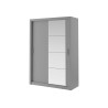 Cette armoire de chambre grise de 150 cm est un meuble design et fonctionnel doté d'une façade miroir et d'un aménagement intérieur bien pensé. Elle est composée d'une penderie et de compartiments de rangement pour organiser tous vos vêtements et accessoires. Sa fabrication robuste en panneaux de particules associe qualité et esthétique et offre une longue durée de vie à votre armoire. Sa longueur de 150 cm vous permet d'optimiser l'espace et d'accéder facilement à vos vêtements. Cette armoire est une excellente solution de rangement pour une chambre à coucher.