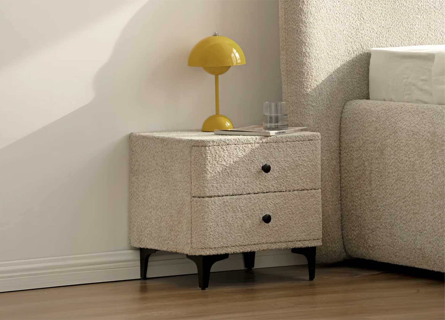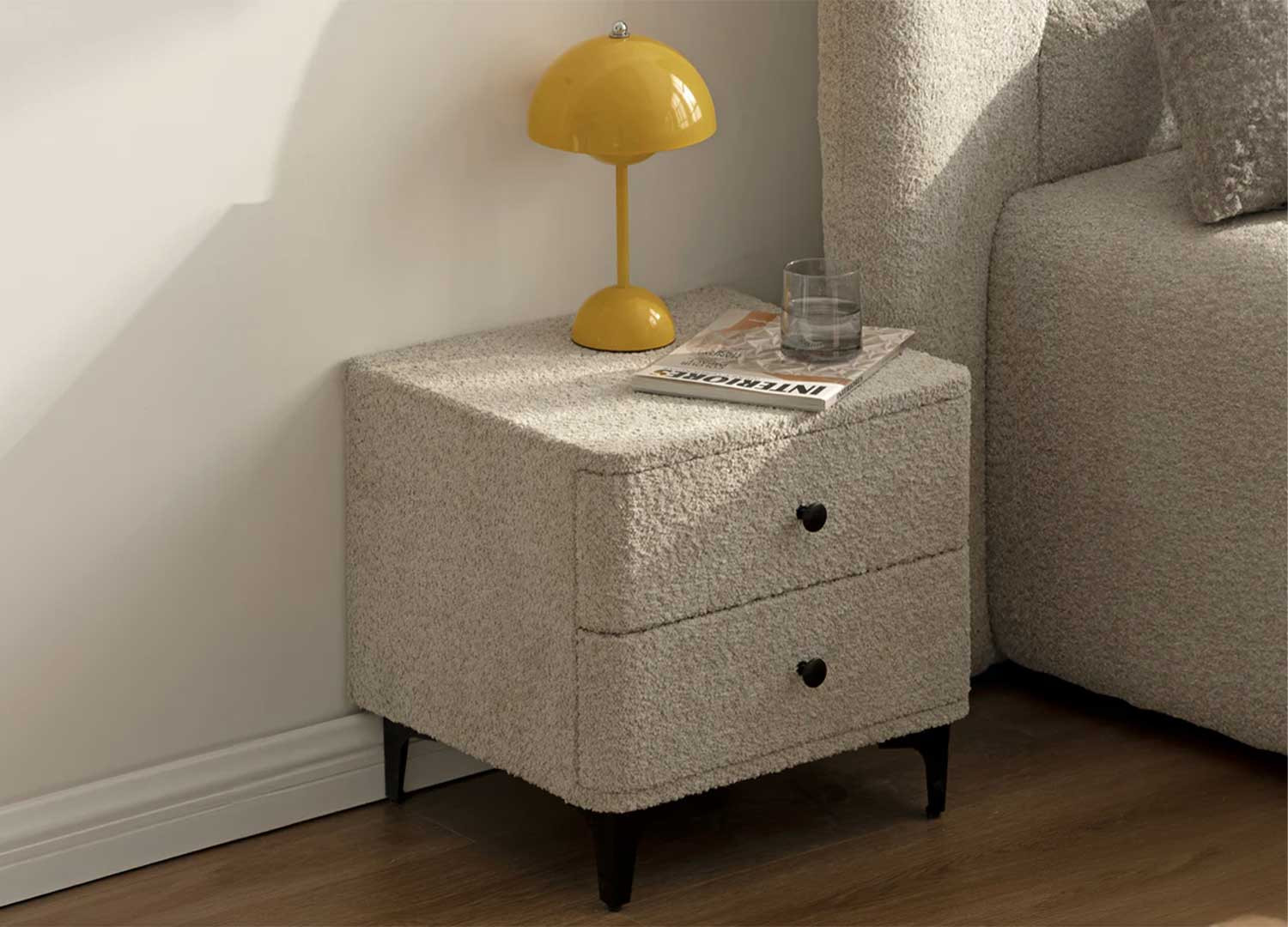 ✓ Parfaitement assorti au lit Natalia, ce chevet en tissu bouclé grège apporte une touche d’élégance et de douceur à la chambre tout en offrant un rangement pratique et raffiné.