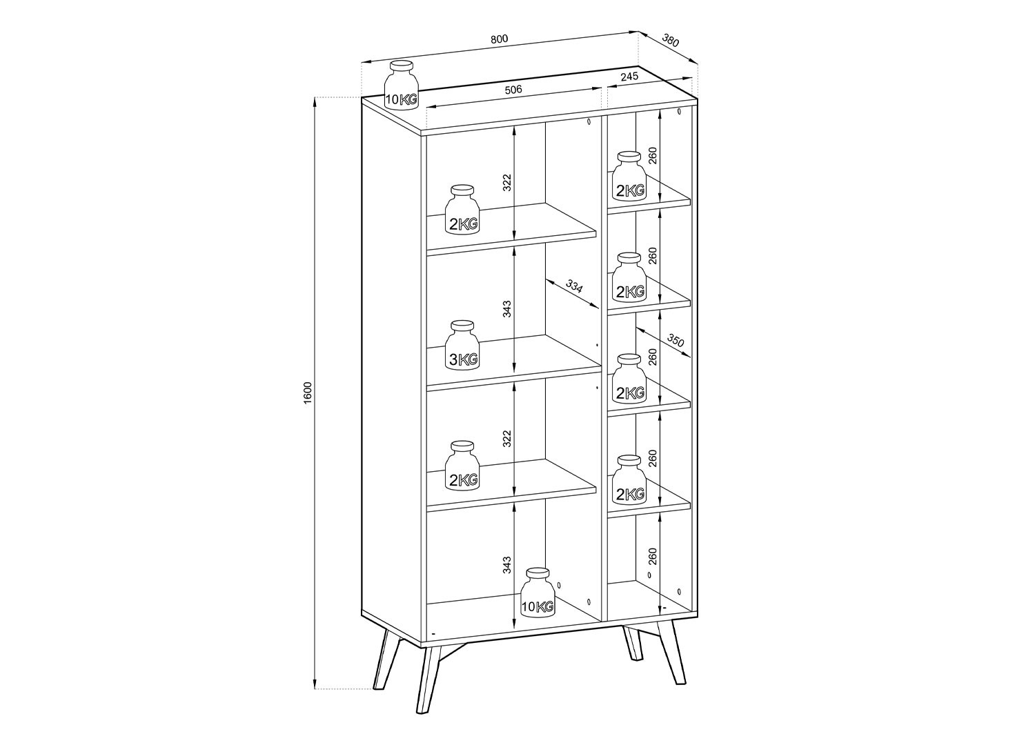 - charge maximale de 2 kg par étagère