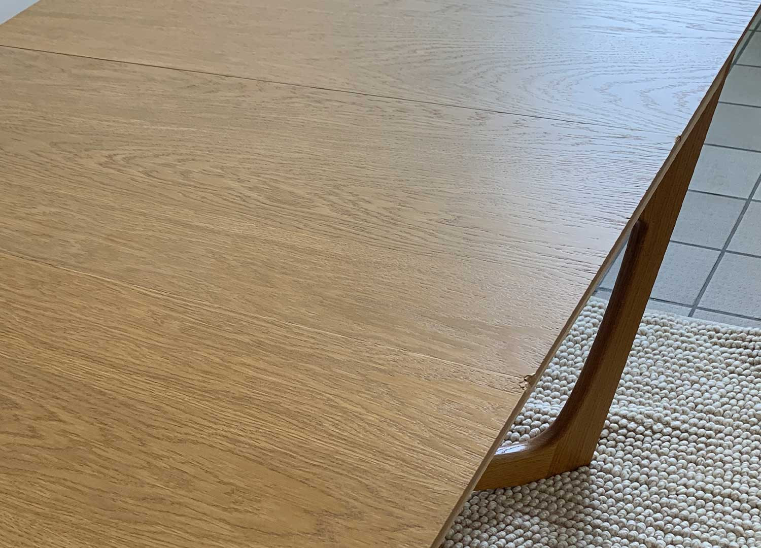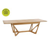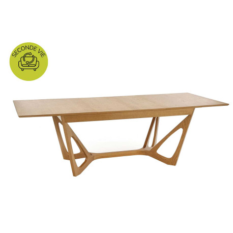 Table à manger extensible couleur chêne mielCette table de salle à manger de couleur chêne miel est issue de la collection "Seconde Vie". Le design de cette table séduit par son piètement original, une structure géométrique qui apporte de la modernité. Le plateau en bois dispose de deux allonges centrales lui permettant de passer de 160 cm à 240 cm facilement. Les deux allonges se rangent sous le plateau. État du produit