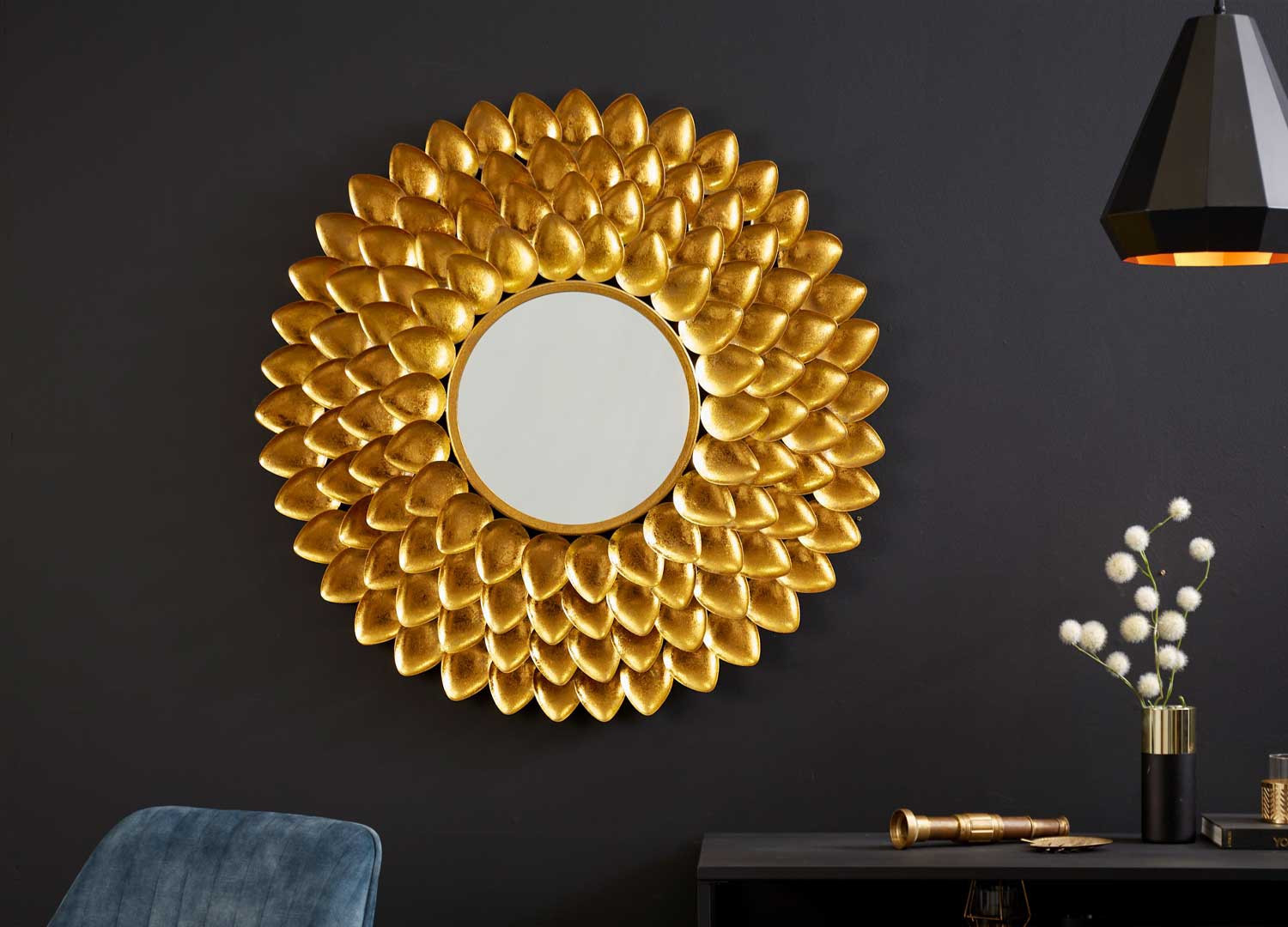Ce beau miroir aux couleurs étincelantes habillera les plus beaux murs de votre maison. Sa structure au décor familier d'une feuille tombée d'un arbre souligne le caractère atypique de ce miroir. Ce grand miroir doré de 112 cm est agréable par la façon dont vous pouvez le positionner : maniable dans tous les sens, sa position ne changera pas le charme de celui-ci. Ce magnifique miroir apportera une touche unique et élégante à votre décoration.