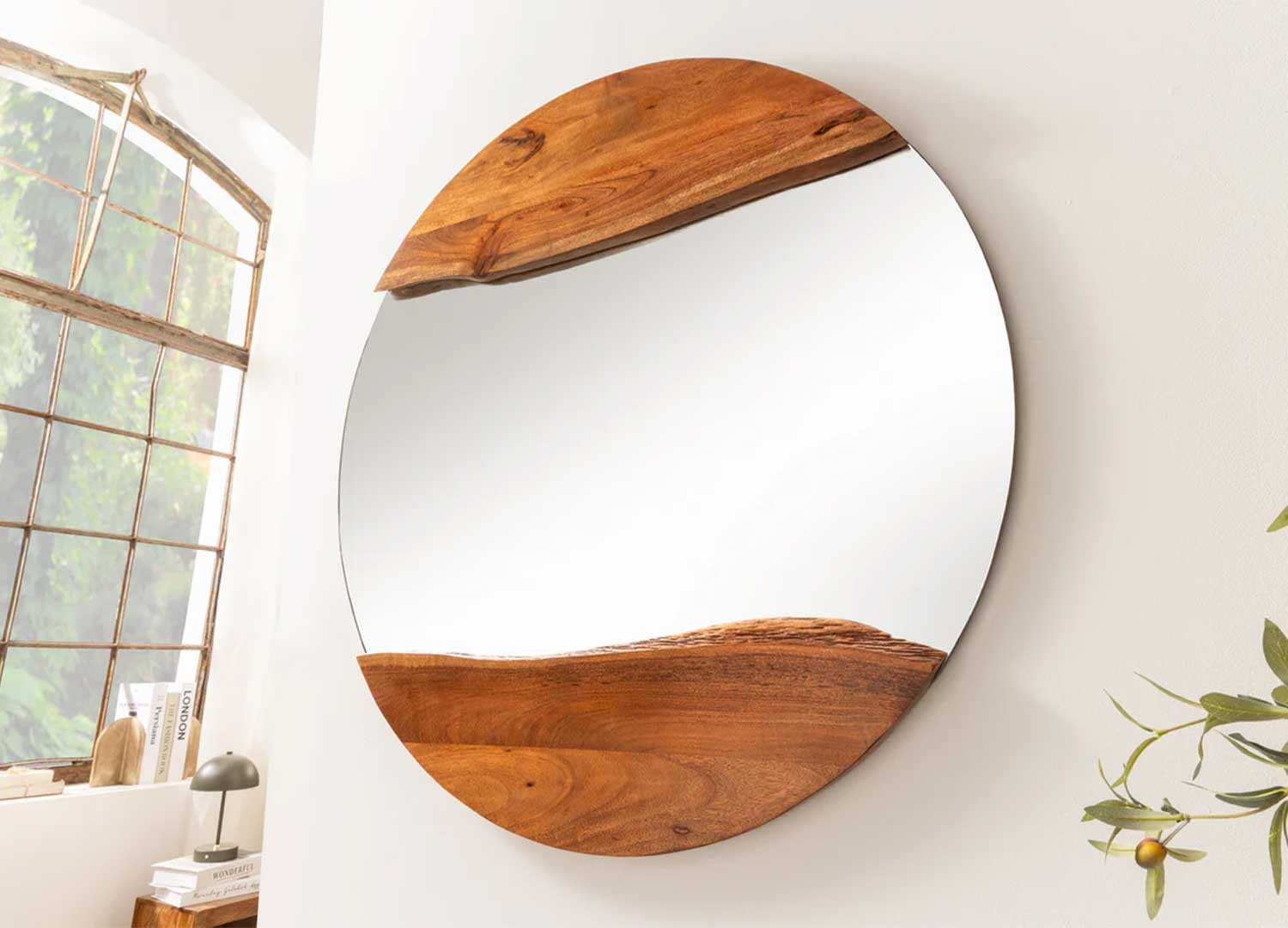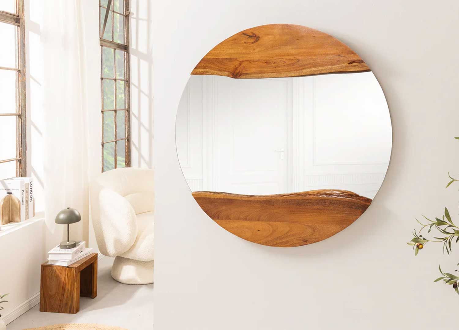 ✓ Chaque miroir Laura est unique : les irrégularités, nœuds et trous naturels du bois d’acacia témoignent de son origine noble et font toute sa personnalité.
