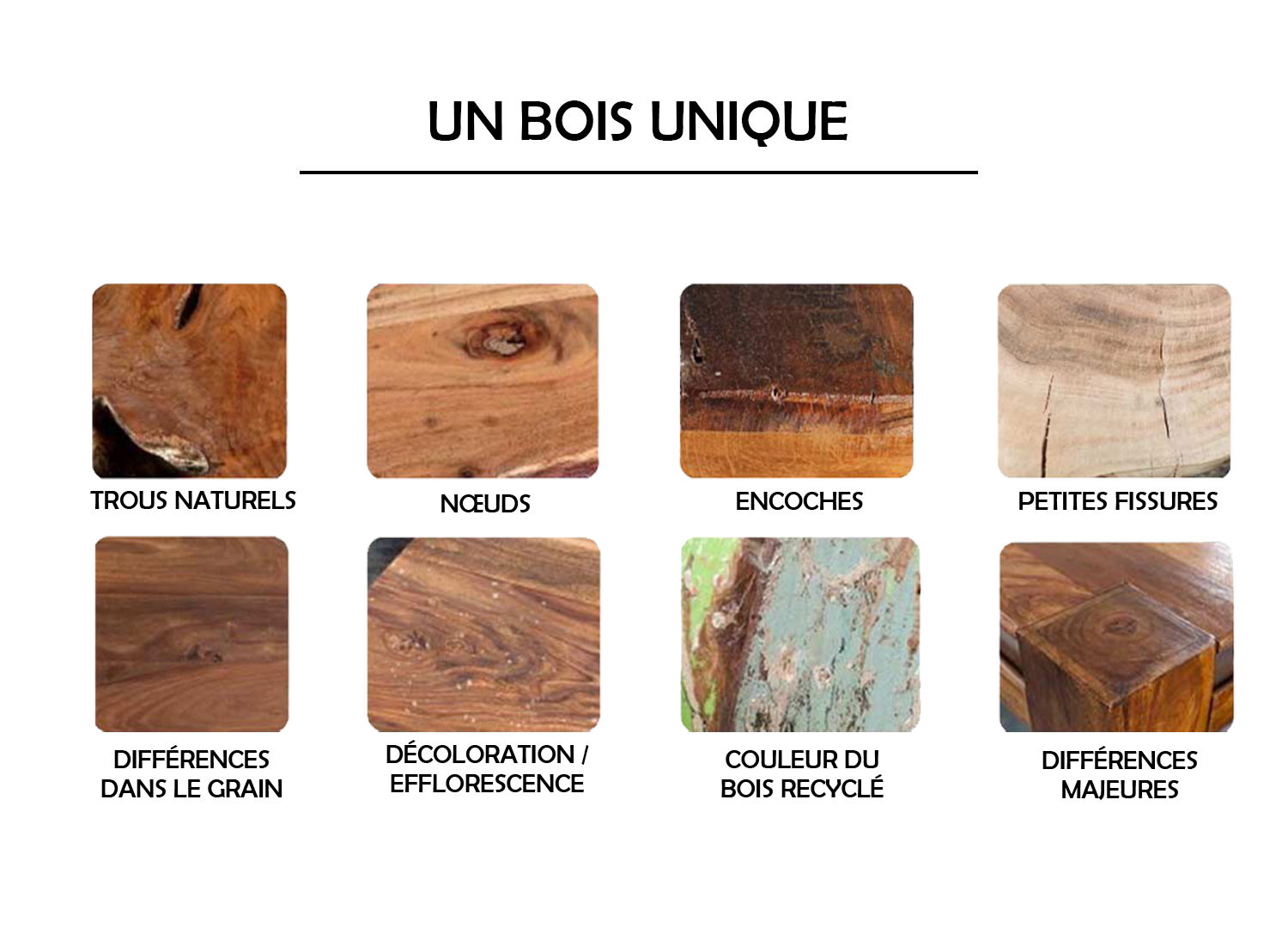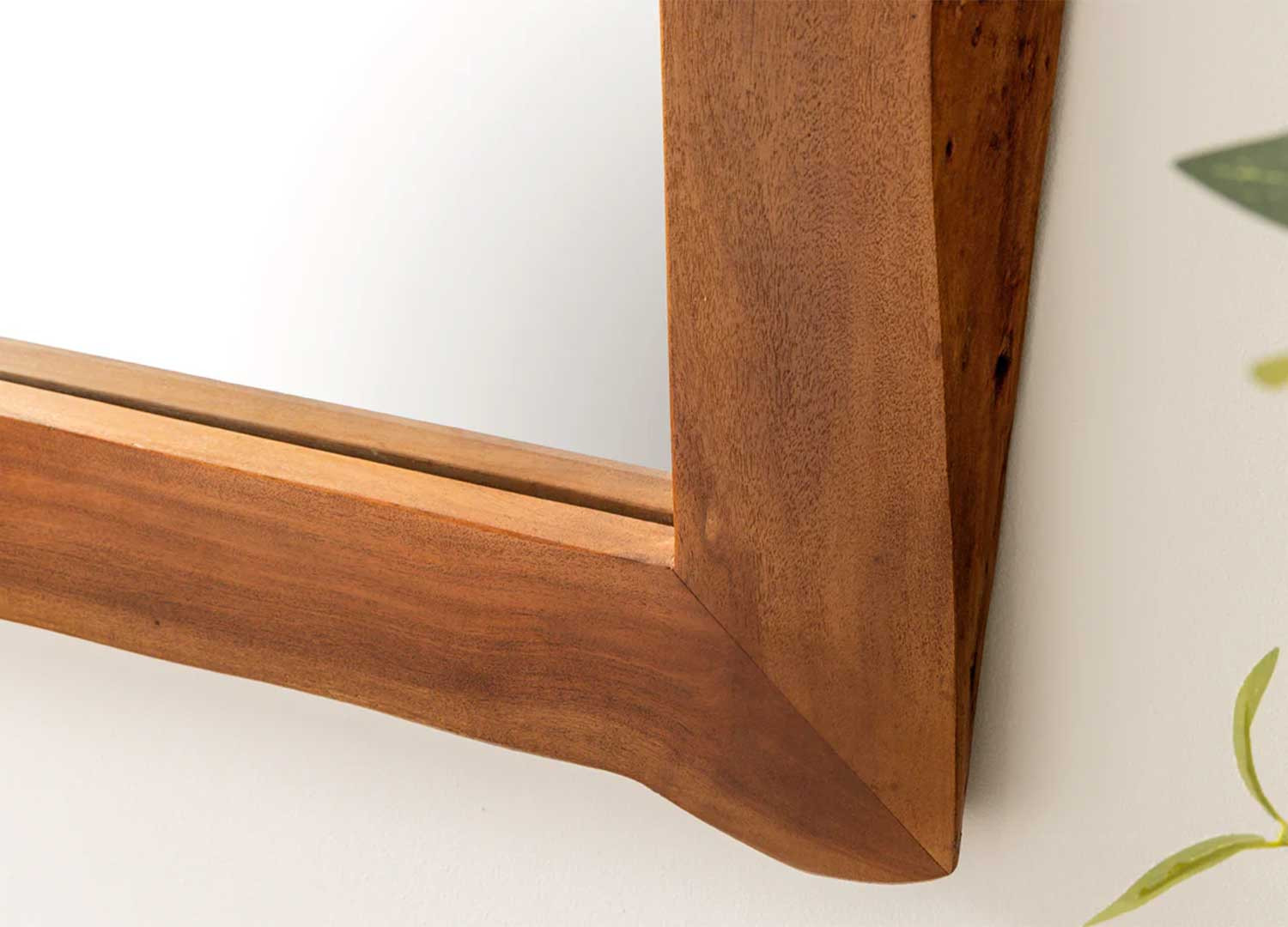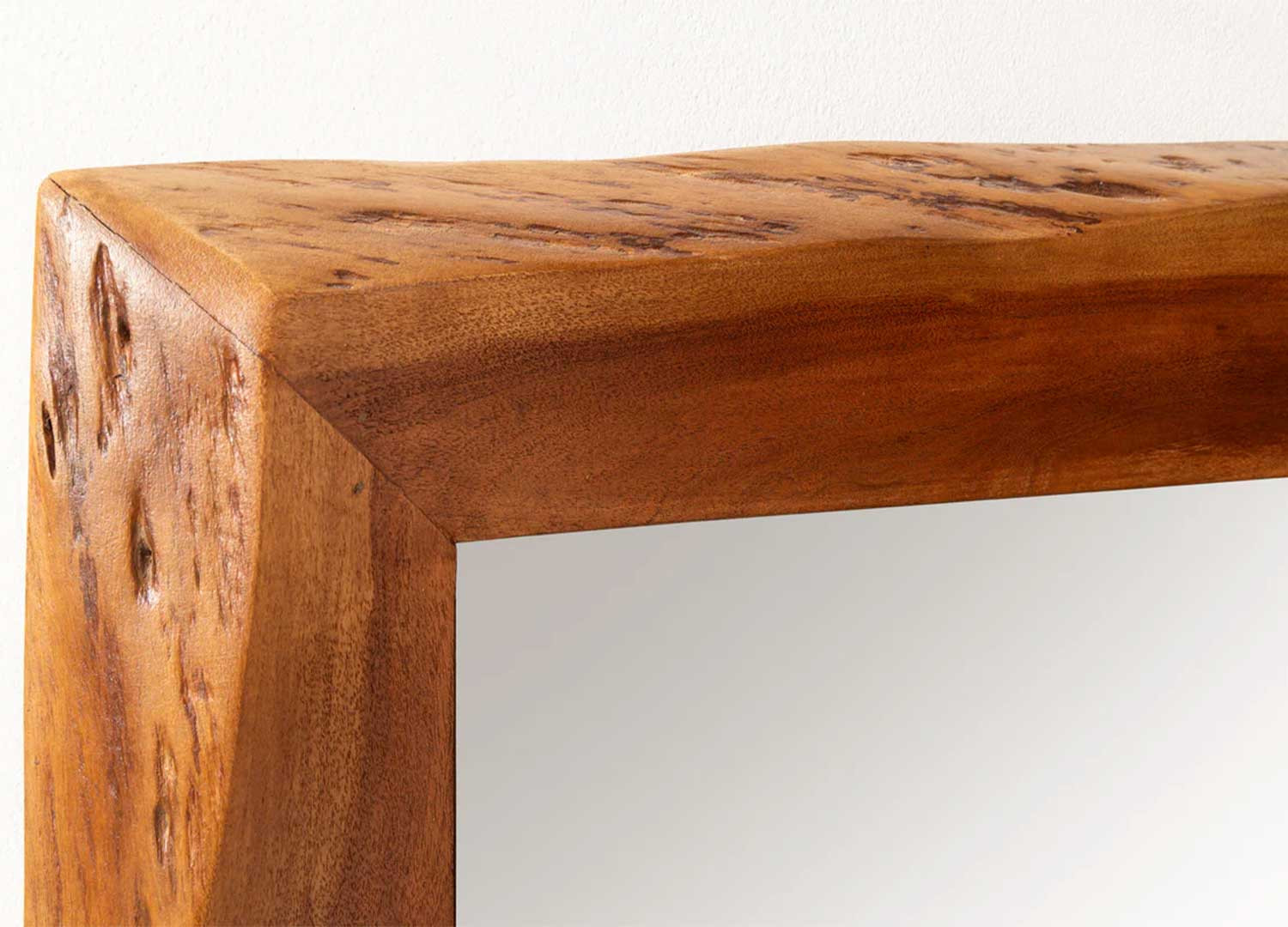 ✓ Chaque miroir Laura est unique : les irrégularités, nœuds et trous naturels du bois d’acacia témoignent de son origine noble et font toute sa personnalité.