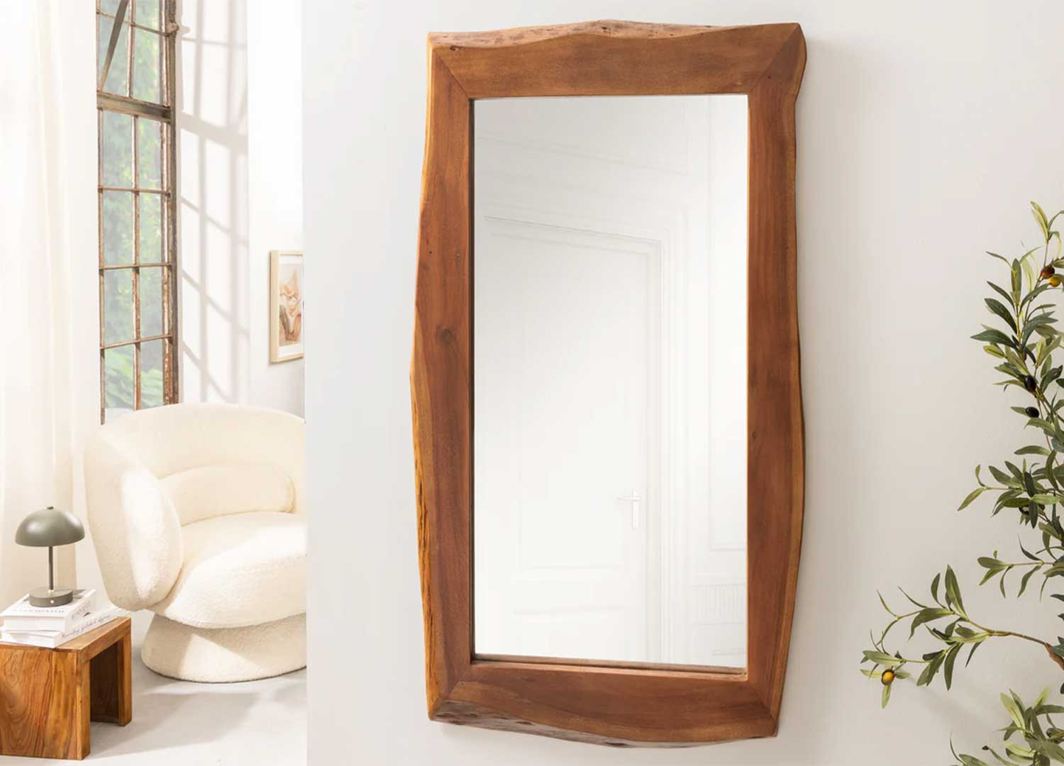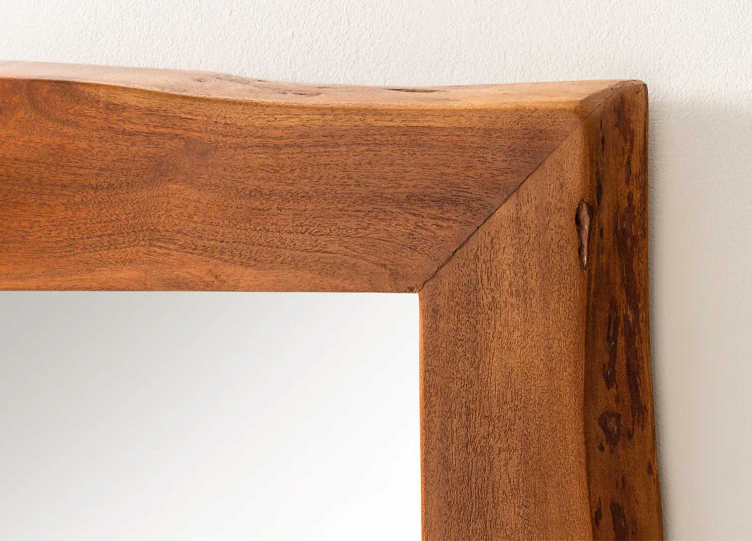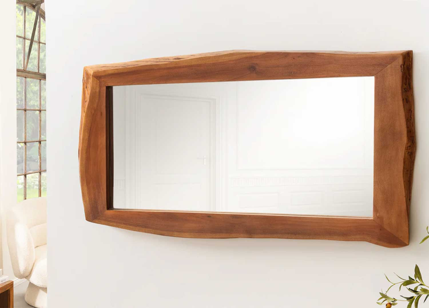 Ajoutez un élément fort et naturel à votre décoration avec le miroir rectangulaire Laura de 160 cm, encadré d’un bois d'acacia massif teinté brun et travaillé avec des bordures naturelles.