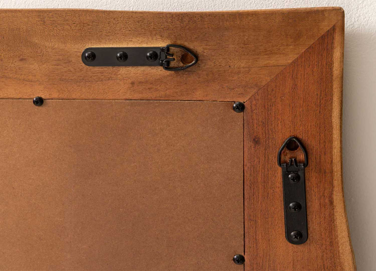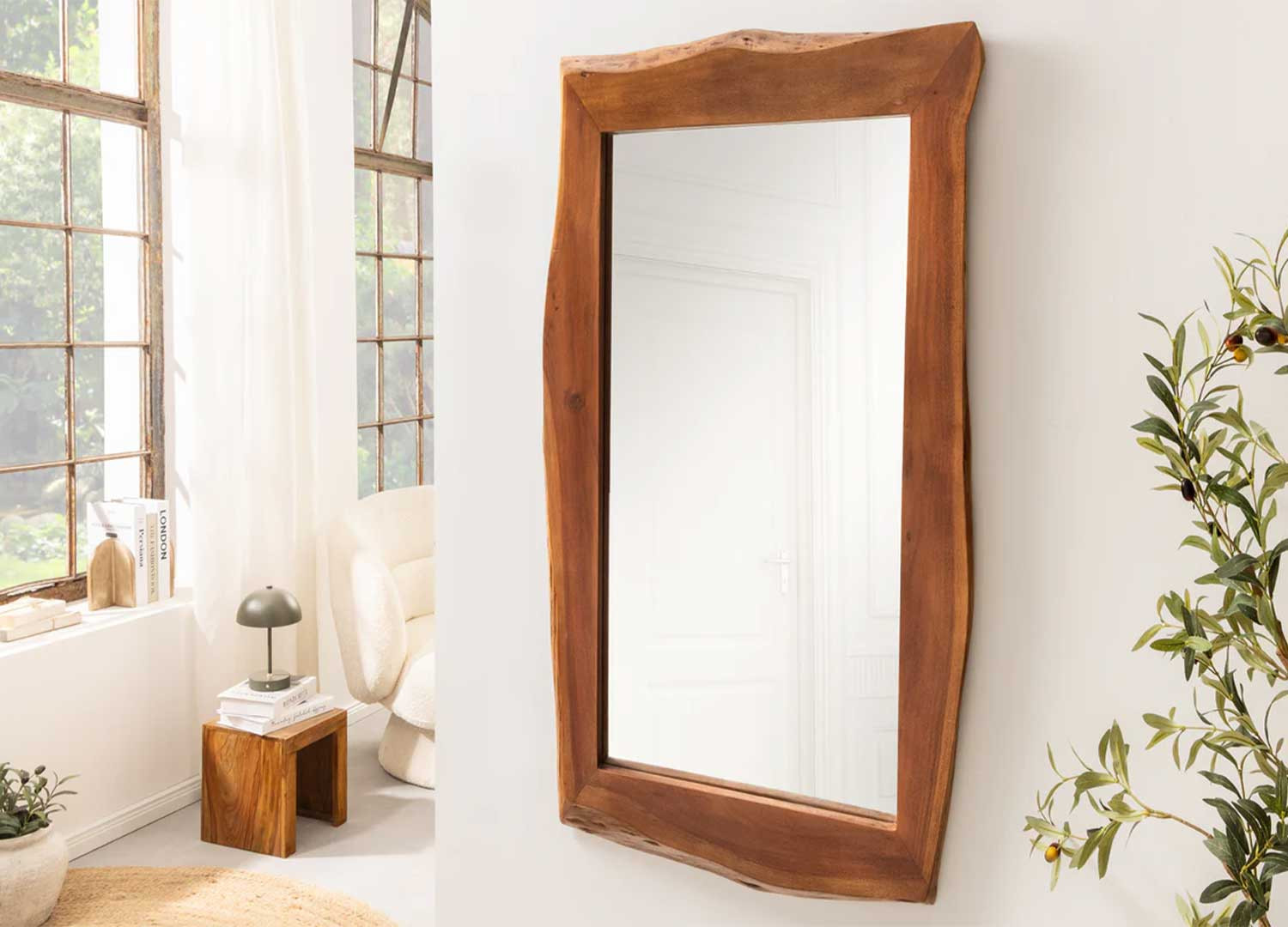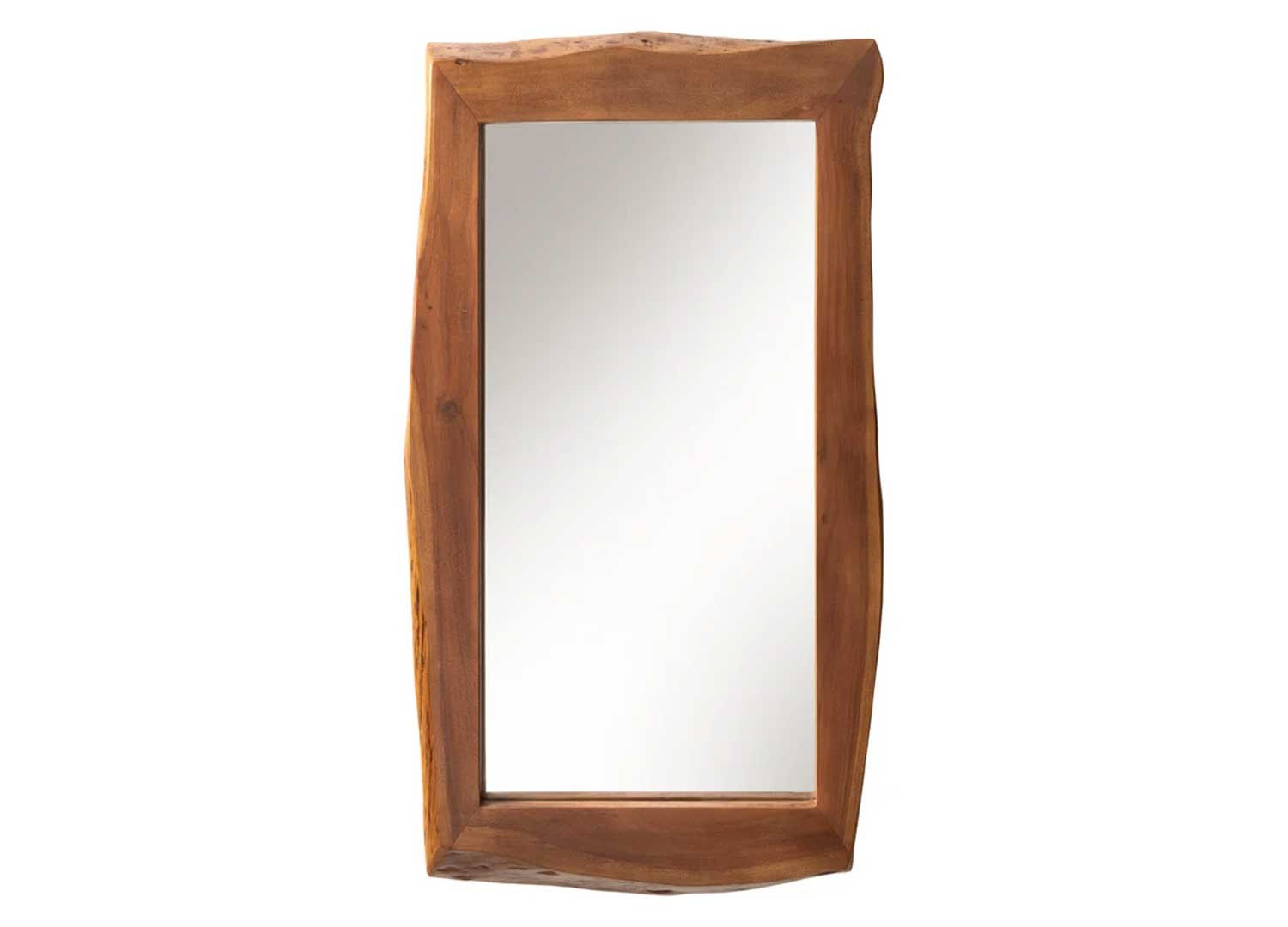 Ajoutez un élément fort et naturel à votre décoration avec le miroir rectangulaire Laura de 160 cm, encadré d’un bois d'acacia massif teinté brun et travaillé avec des bordures naturelles.