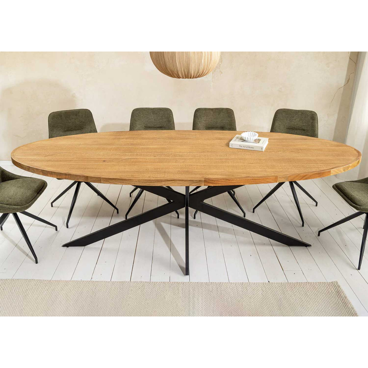 Table à manger ovale en manguier et métal noir Tilio