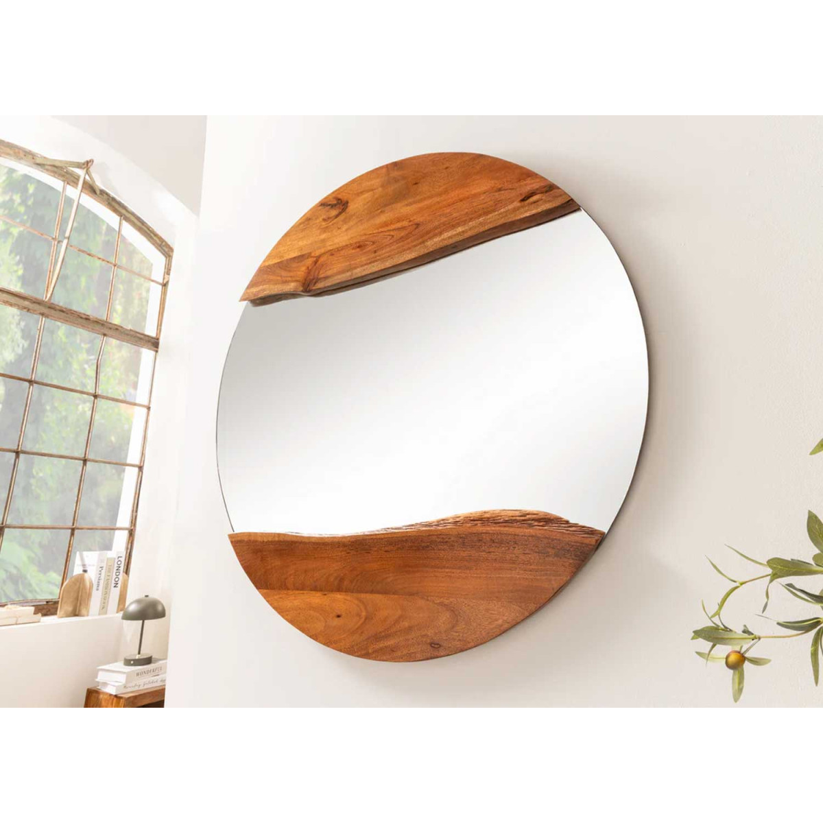 Miroir mural rond en bois d'acacia Laura