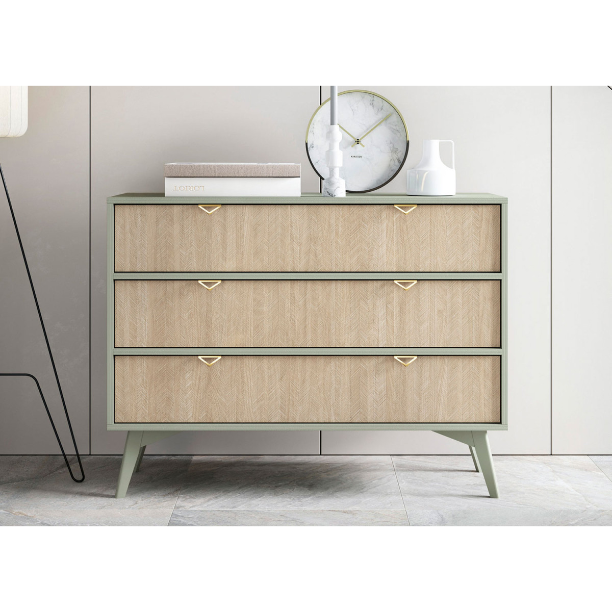 Commode 3 tiroirs verte et bois clair Forest
