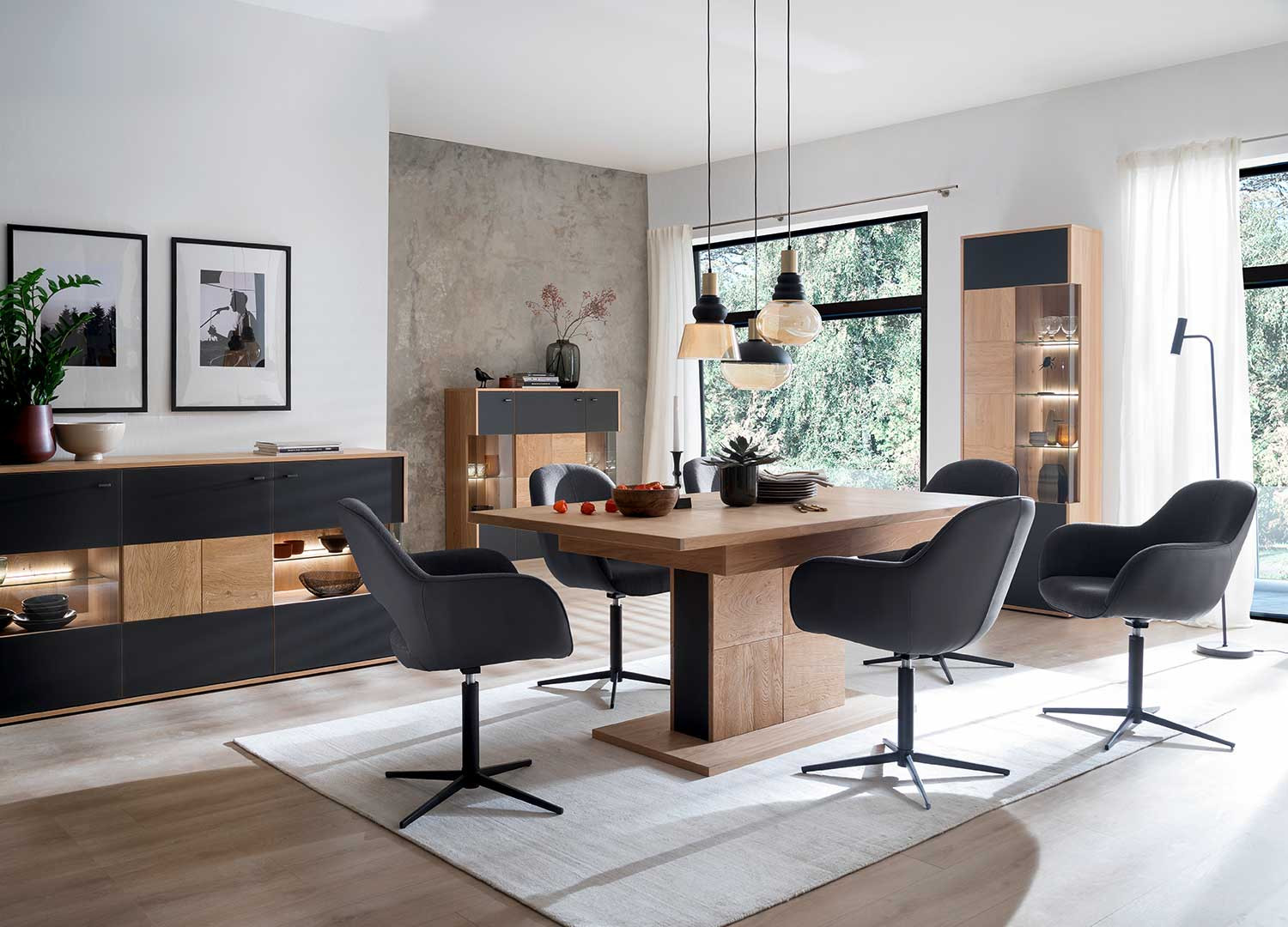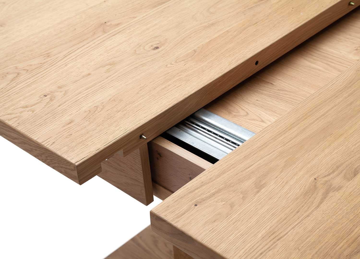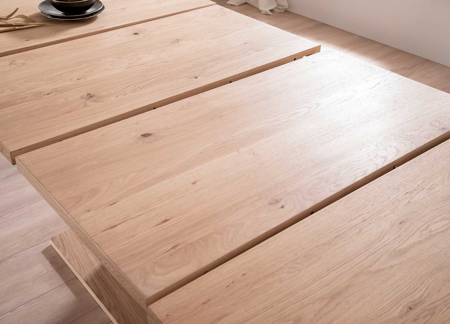 Cette table à manger est exceptionnelle. Son plateau, son cadre et son socle sont fabriqués en plaquage chêne bianco. Grâce à son système d’extension synchronisé, elle peut atteindre une longueur totale de 2m80 avec deux rallonges de 50 cm chacune. Pour harmoniser votre salle à manger, complétez votre intérieur avec les meubles de rangement assortis de la collection Valencia et profitez d’un ensemble coordonné.