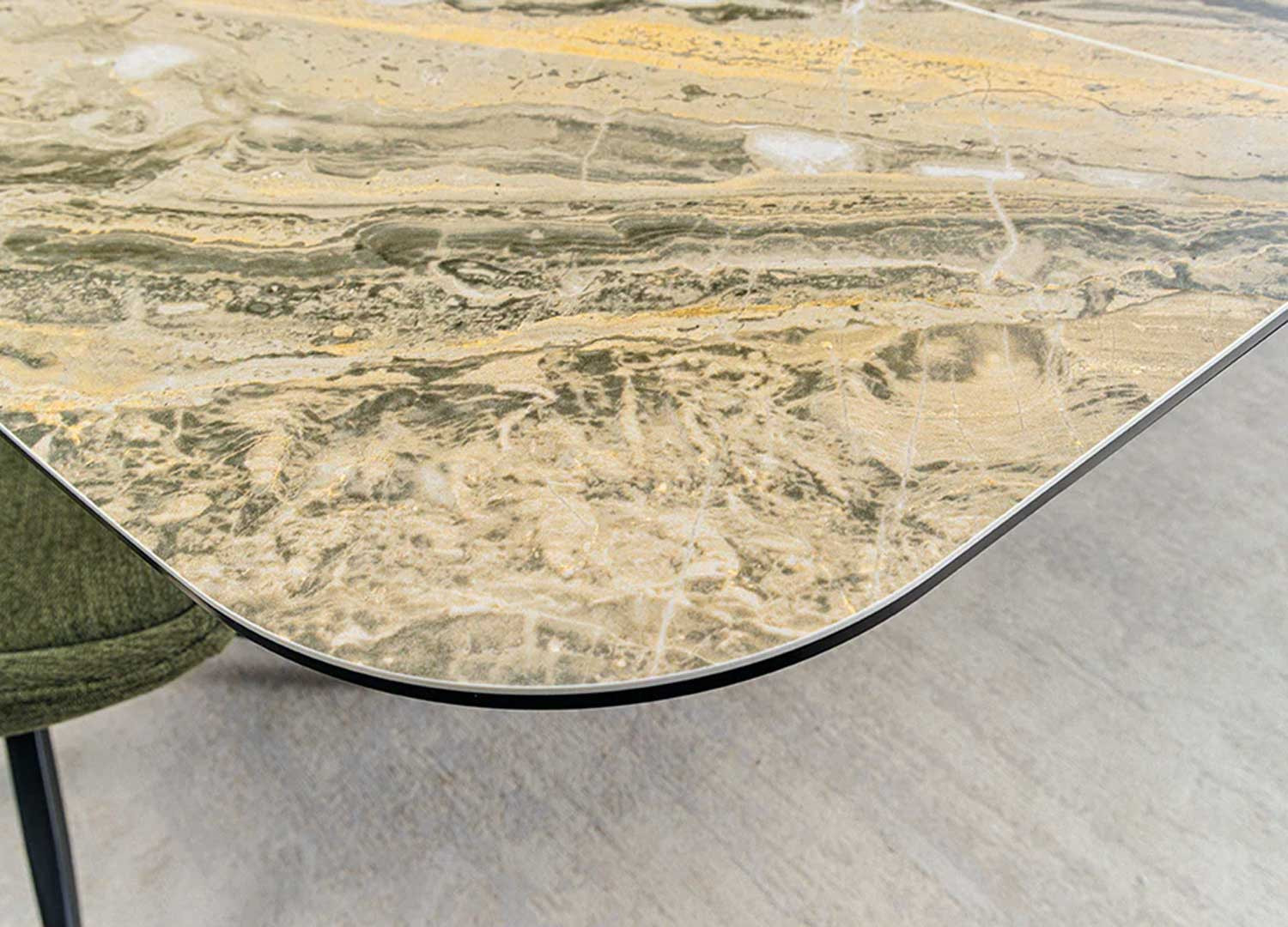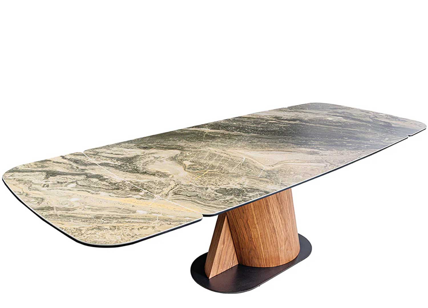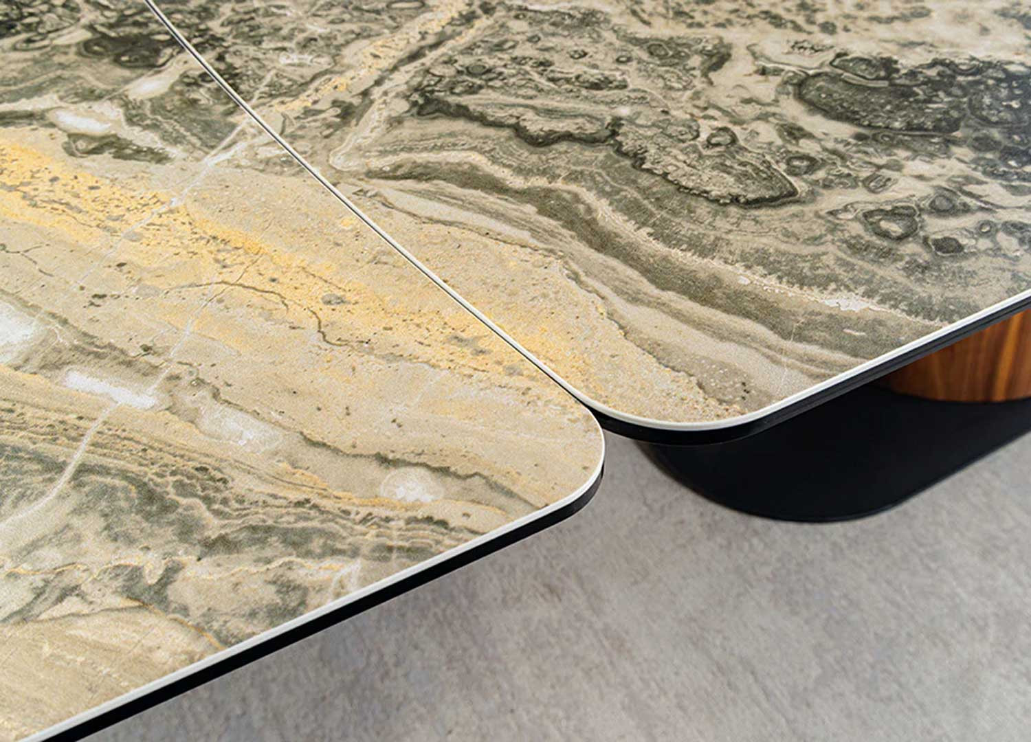 ✓ Cette table de salle à manger est une pièce d’exception où la céramique et le bois s’unissent pour former un ensemble élégant.