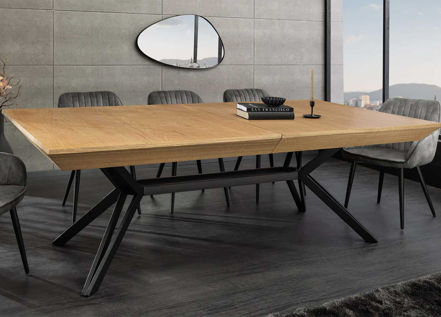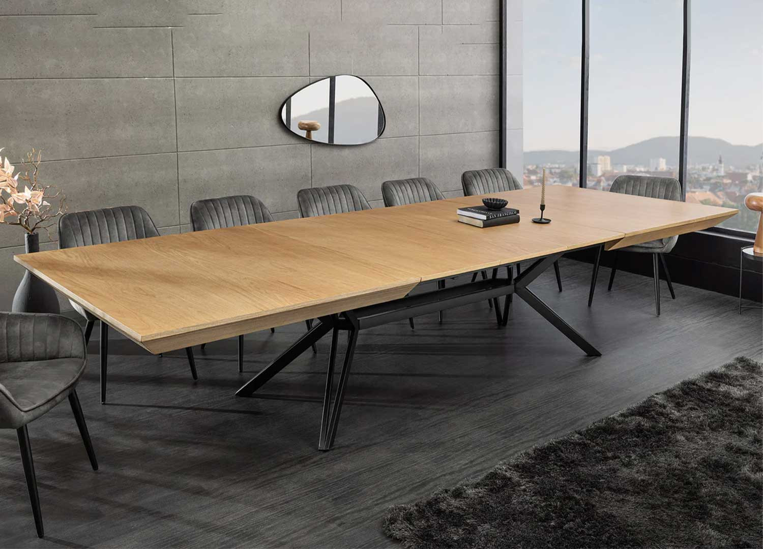 ✓ La table extensible Armando est adaptée à un intérieur qui recherche à la fois de l’espace et de l’identité visuelle : une salle à manger qui veut accueillir sans compromis sur le style.