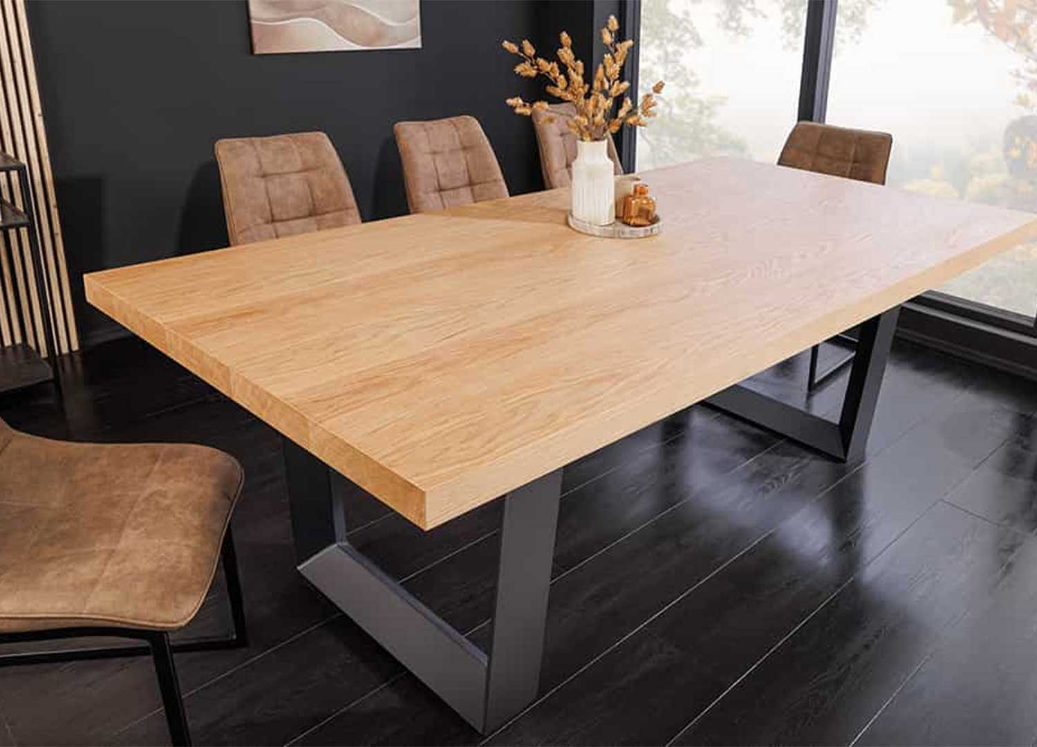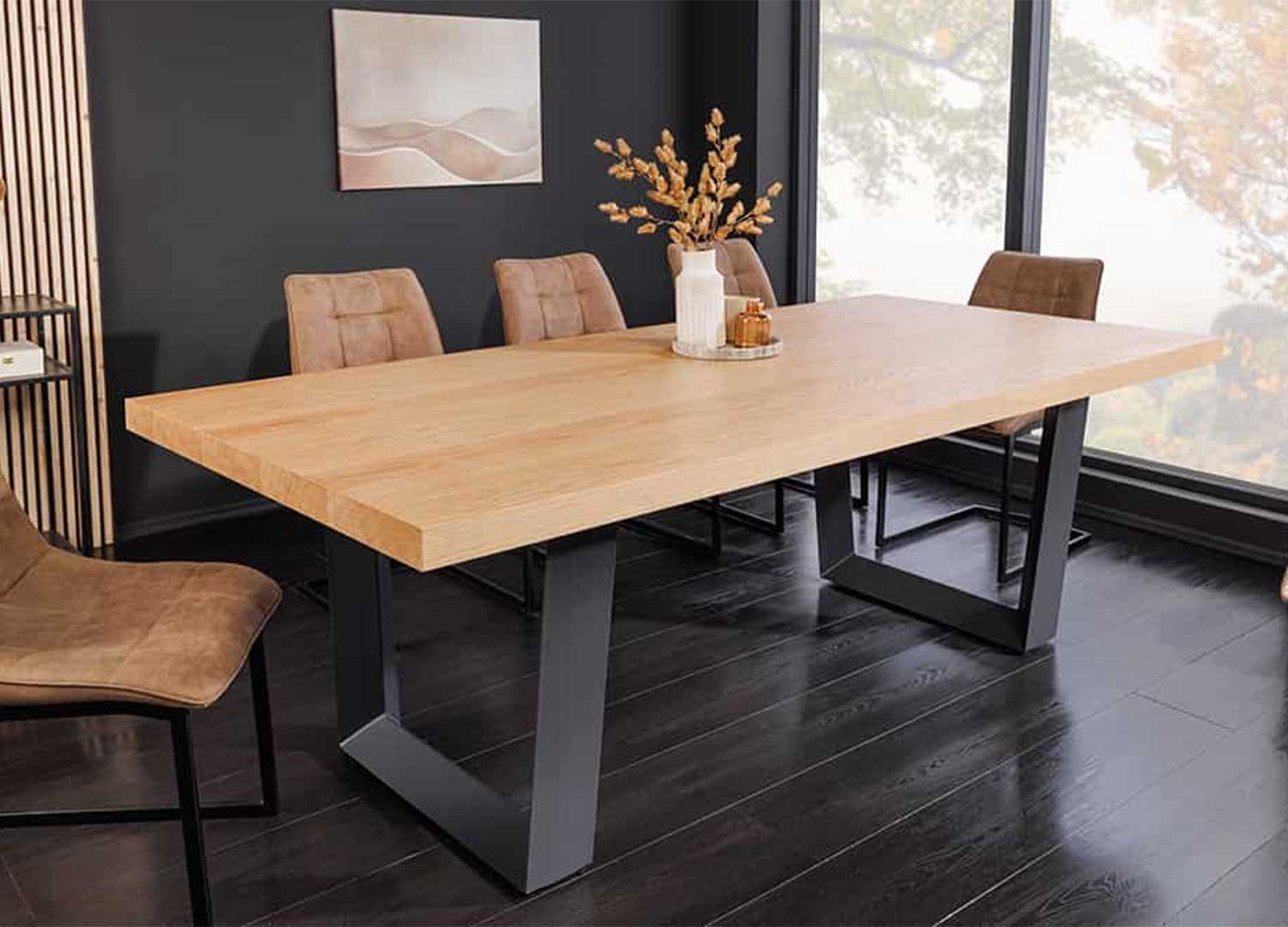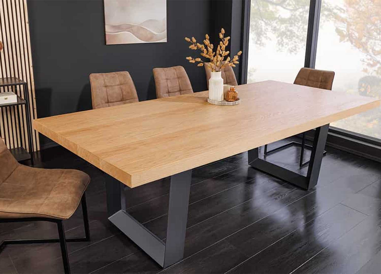 ✓ Avec la table à manger Anaya, invitez le design industriel à votre table : un plateau effet chêne naturel soutenu par un piètement noir qui impose style et caractère à votre salle à manger.