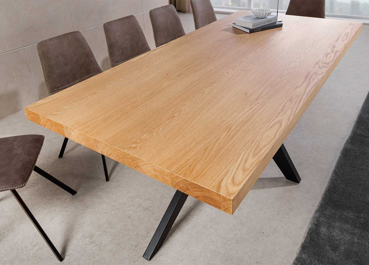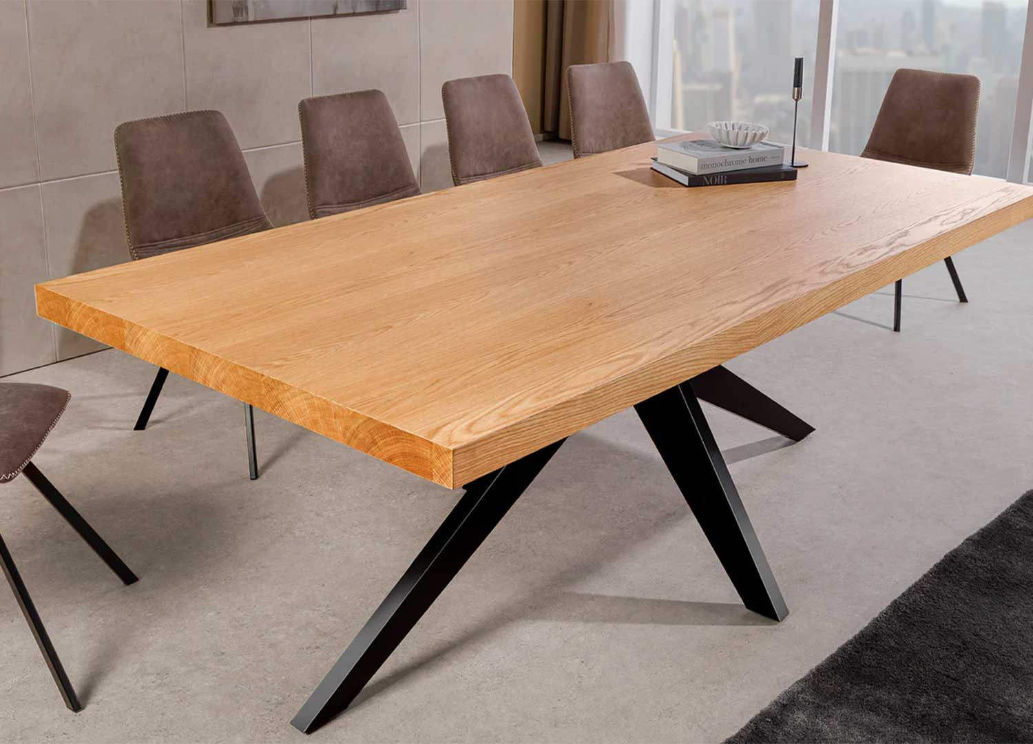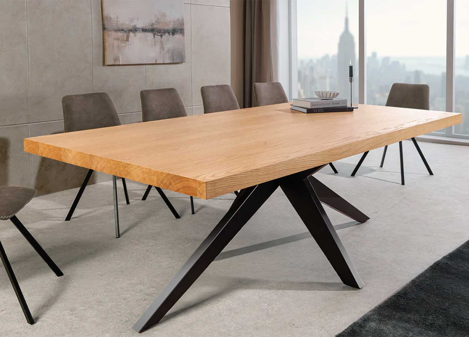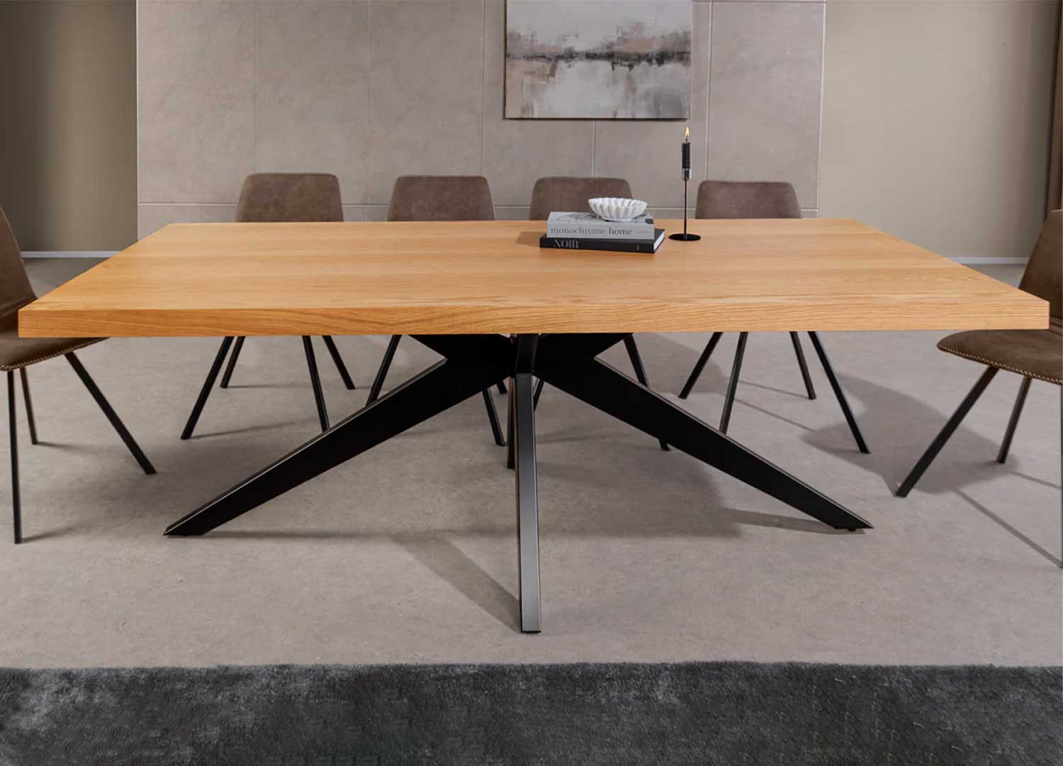 ✓ Avec la table à manger rectangulaire Anaya, invitez le design industriel à votre table : un plateau effet chêne naturel soutenu par un piètement étoile noir qui impose style et caractère à votre salle à manger.