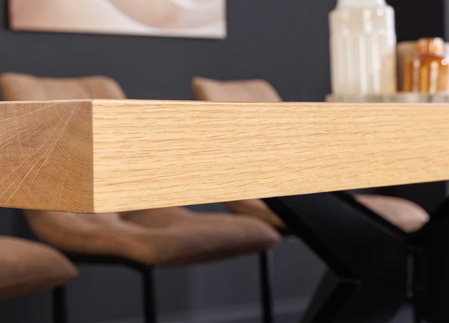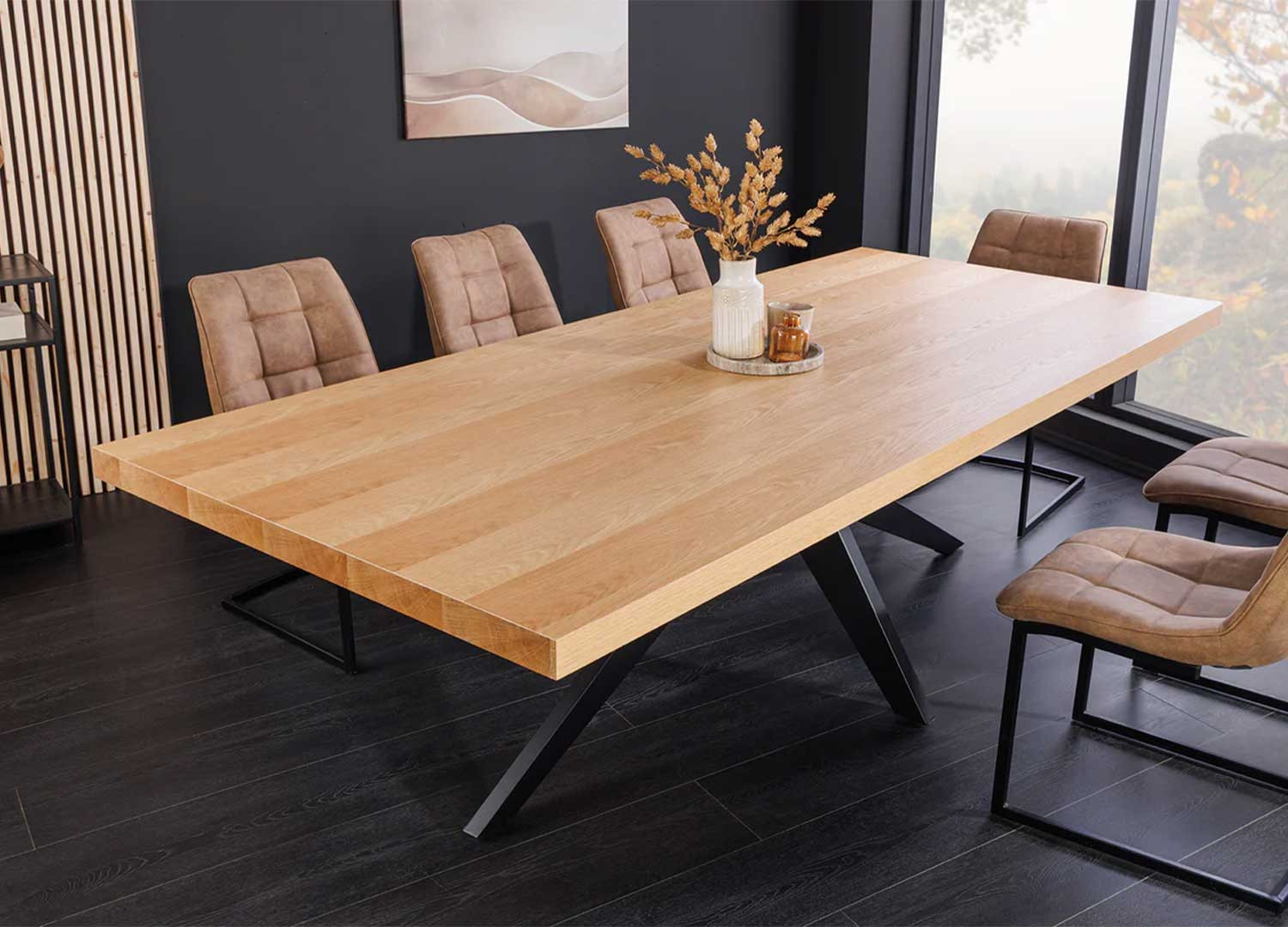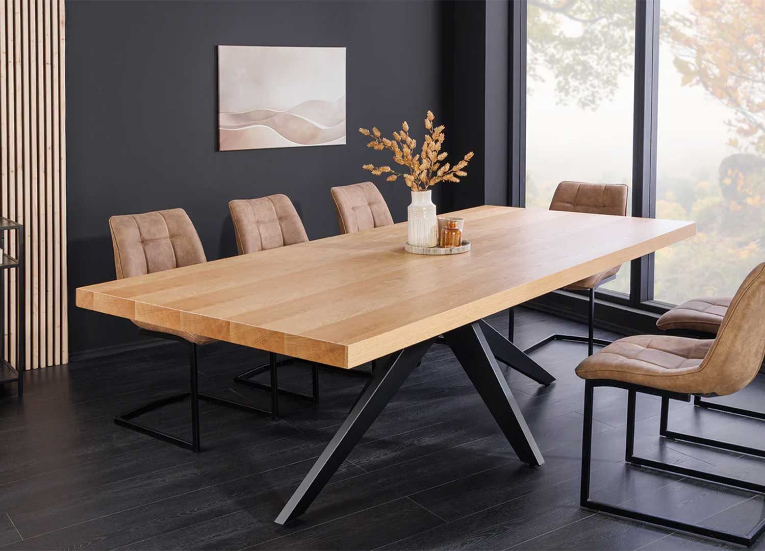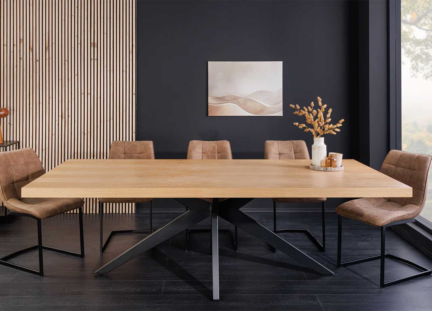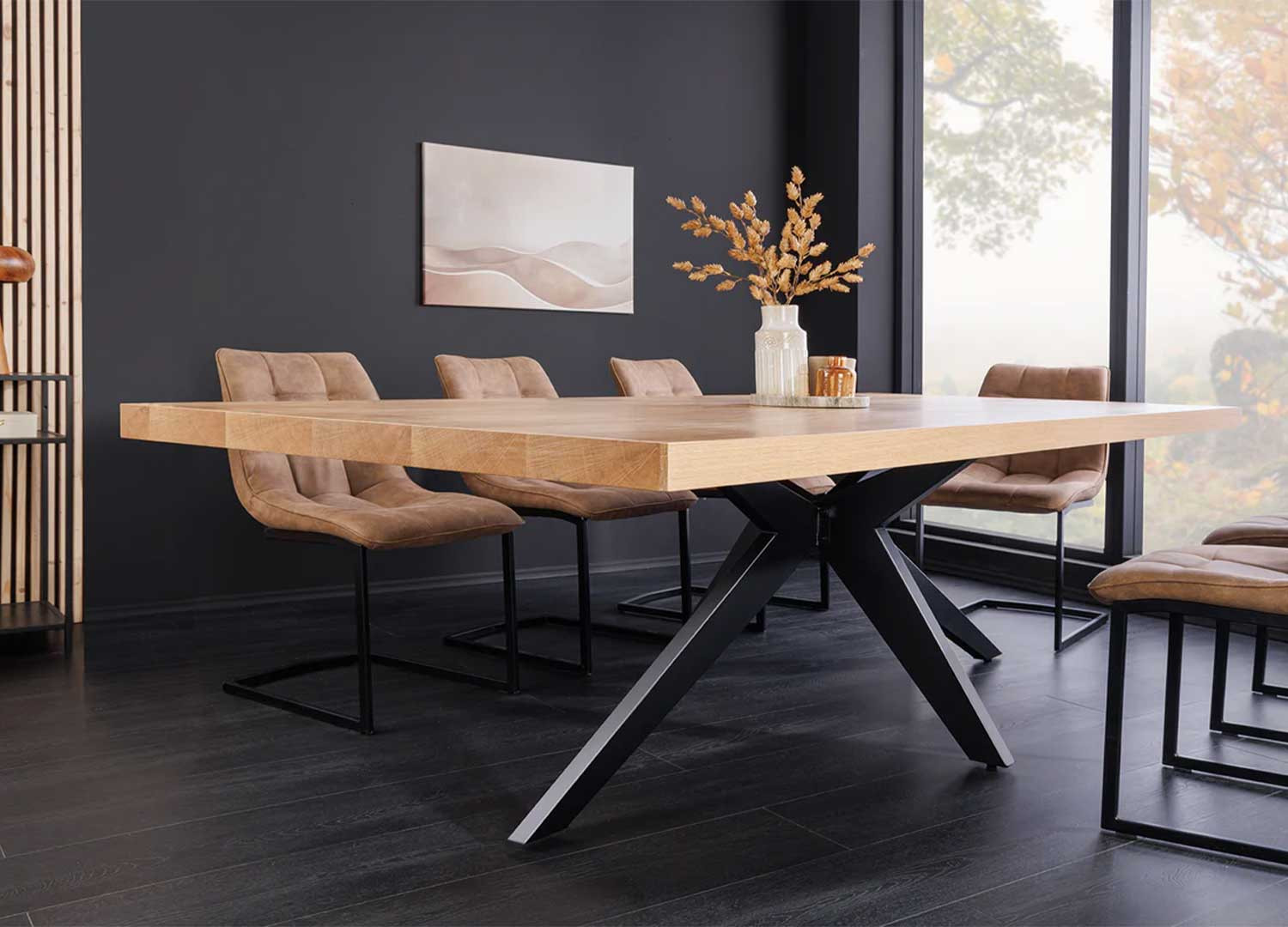 ✓ Avec la table à manger rectangulaire Anaya, invitez le design industriel à votre table : un plateau effet chêne naturel soutenu par un piètement étoile noir qui impose style et caractère à votre salle à manger.