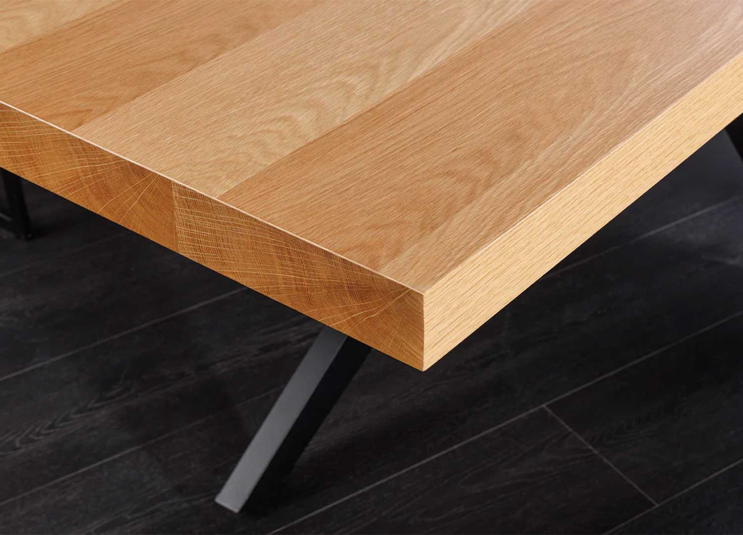 La table à manger rectangulaire Anaya se veut imposante grâce à sa longueur de 2m40. Le plateau est réalisé en panneau MDF et est recouvert d’un placage chêne qui met en valeur la texture du bois. Le piétement central est fabriqué en métal et sa forme étoile met un accent particulier à l'ensemble.