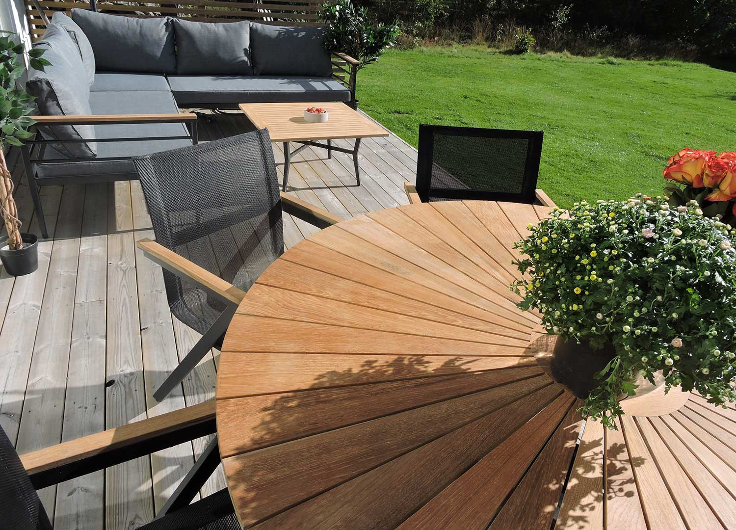 Le teck est un bois tropical naturellement résistant aux intempéries, ce qui en fait un matériau de choix pour les meubles d'extérieur. Il est également durable, ce qui signifie qu'il peut durer des années avec un minimum d'entretien. Le teck est également apprécié pour sa beauté naturelle, avec des motifs de grains riches et des couleurs chaudes qui ajoutent une touche de sophistication à tout espace extérieur.