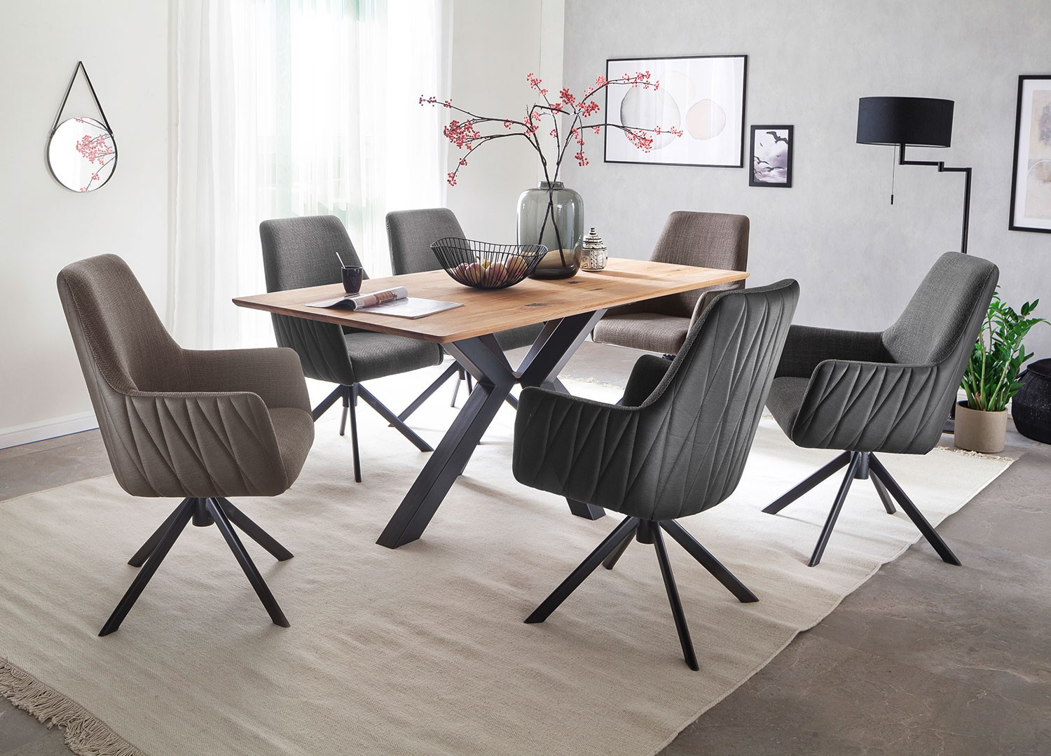 On aime cette table de salle à manger au style industriel pour son allure unique et originale. Avec son plateau en bois massif chêne sauvage et son piétement en métal en forme X, cette table de salle à manger ne manquera pas de séduire les amateurs de design. On apprécie ses détails soignés et l'esprit robuste que dégage cette table à manger.