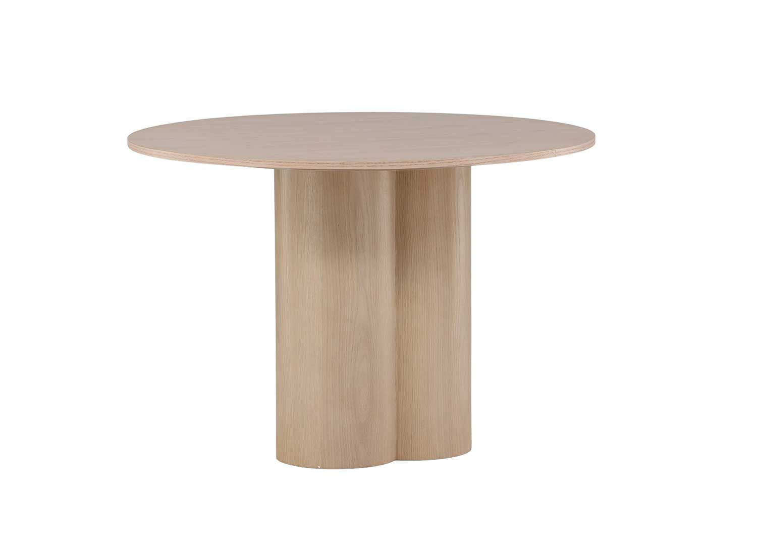 Cette table à manger ronde en bois est la table idéale pour votre salle à manger. Cette table ronde est fabriquée en bois de couleur chêne chaulé ajoutant une élégance naturelle et un design scandinave. La table peut accueillir jusqu'à 4 personnes. Les 3 pieds cylindrique au centre sont solides et robustes pour soutenir votre table et offrir une stabilité optimale. Son design minimaliste et intemporel permet à la table de s'intégrer parfaitement dans n'importe quel type de décor. Transformez votre espace avec cette table à manger ronde en bois de 110 cm, et profitez de bons moments en famille.