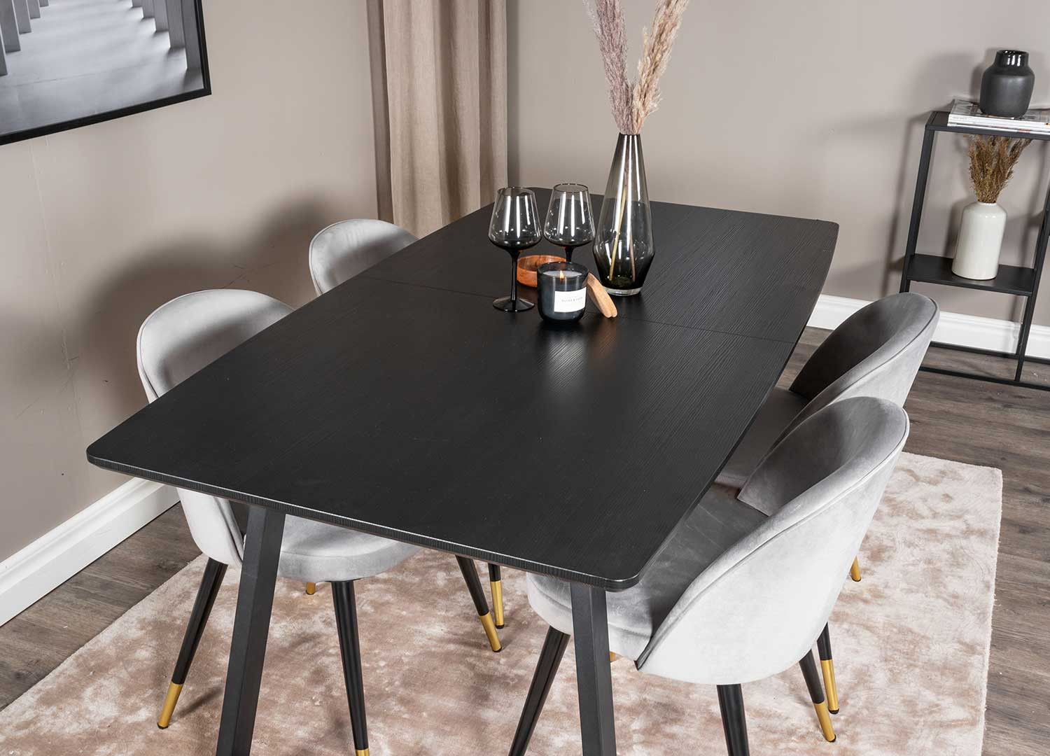 Cette table de salle à manger élégante, chic et intemporelle de couleur noire apportera une impression de luxe dans une salle à manger. Cette table de repas est pratique puisqu'elle peut être rallongée pour accueillir autant de convives que nécessaire grâce à son allonge centrale papillon. La table extensible noire de la collection Inca est fabriquée avec un plateau en MDF élégant et des pieds en métal noir qui lui donnent une apparence sophistiquée et robuste. En un tour de main vous passerez de 4 à 8 personnes environ.