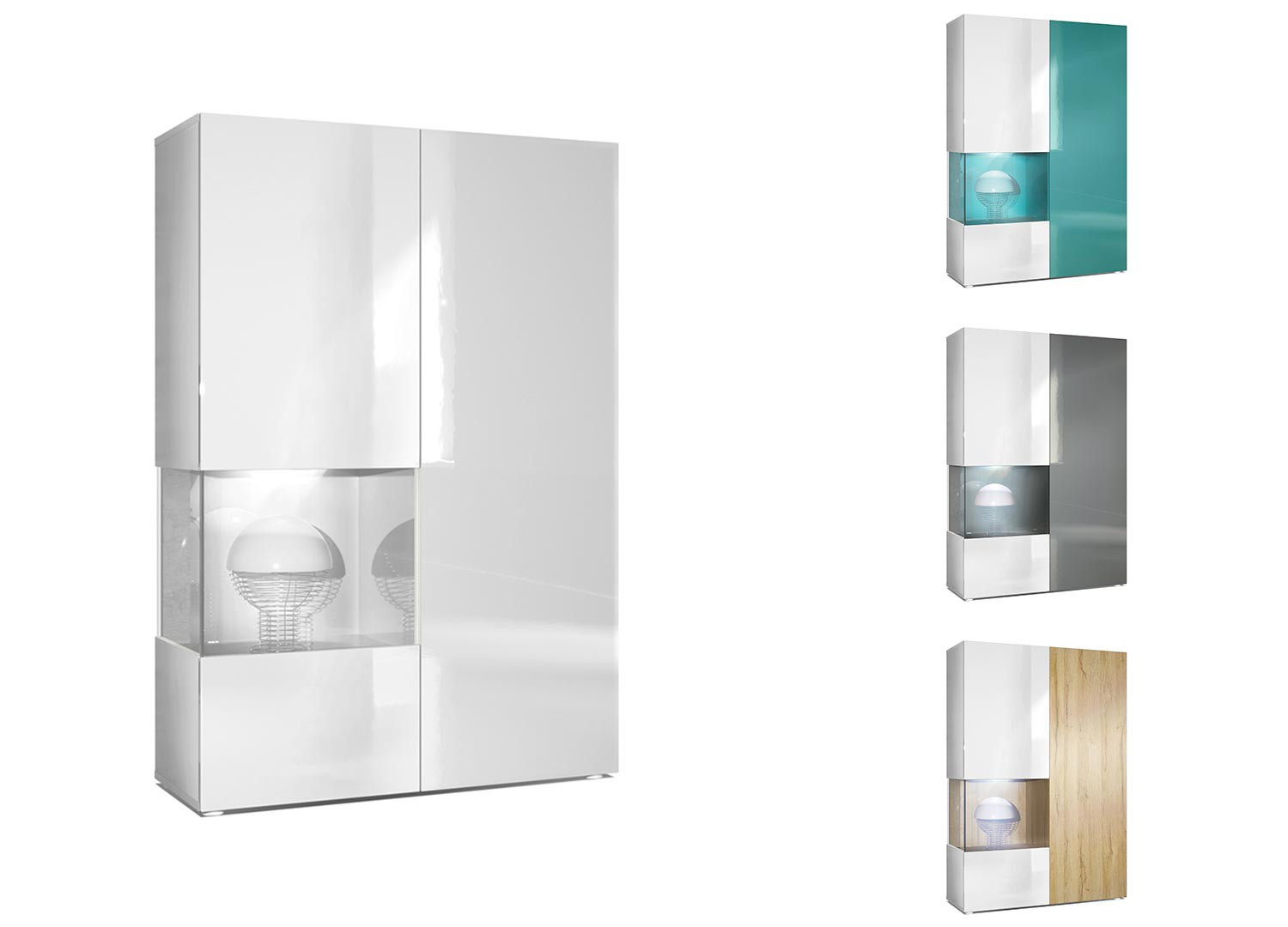 | Finition façade | Blanc laqué pour la porte de gauche & Lilas laqué, Gris laqué, Bordeaux laqué, Grège laqué, Blanc laqué, Bleu pétrole laqué, Anthracite structuré ou Chêne structuré pour la porte de droite |