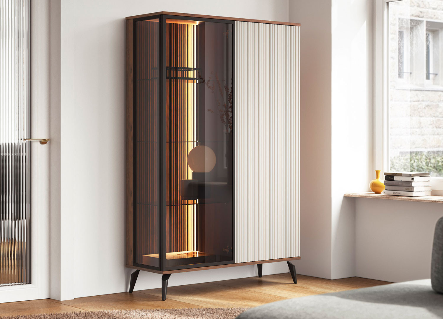 ✓ Parfait pour les intérieurs modernes, la vitrine haute Vici marie contrastes de matières et de teintes avec subtilité pour un effet visuel haut de gamme dans les salles à manger.